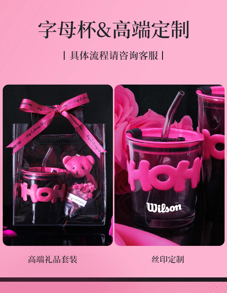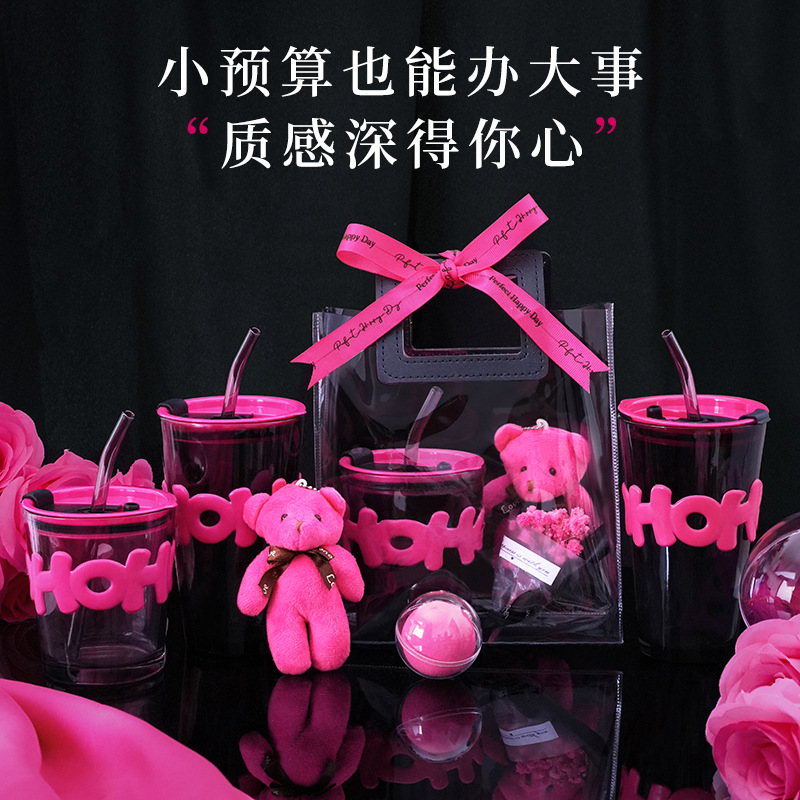 alphabet mug high straight body: black handbag gift bag + rose red bear + rose red small flower + rose red ribbon