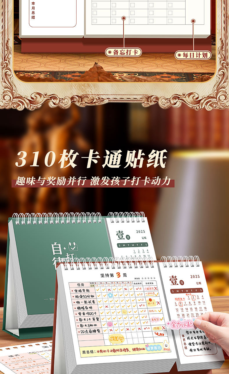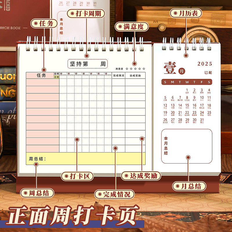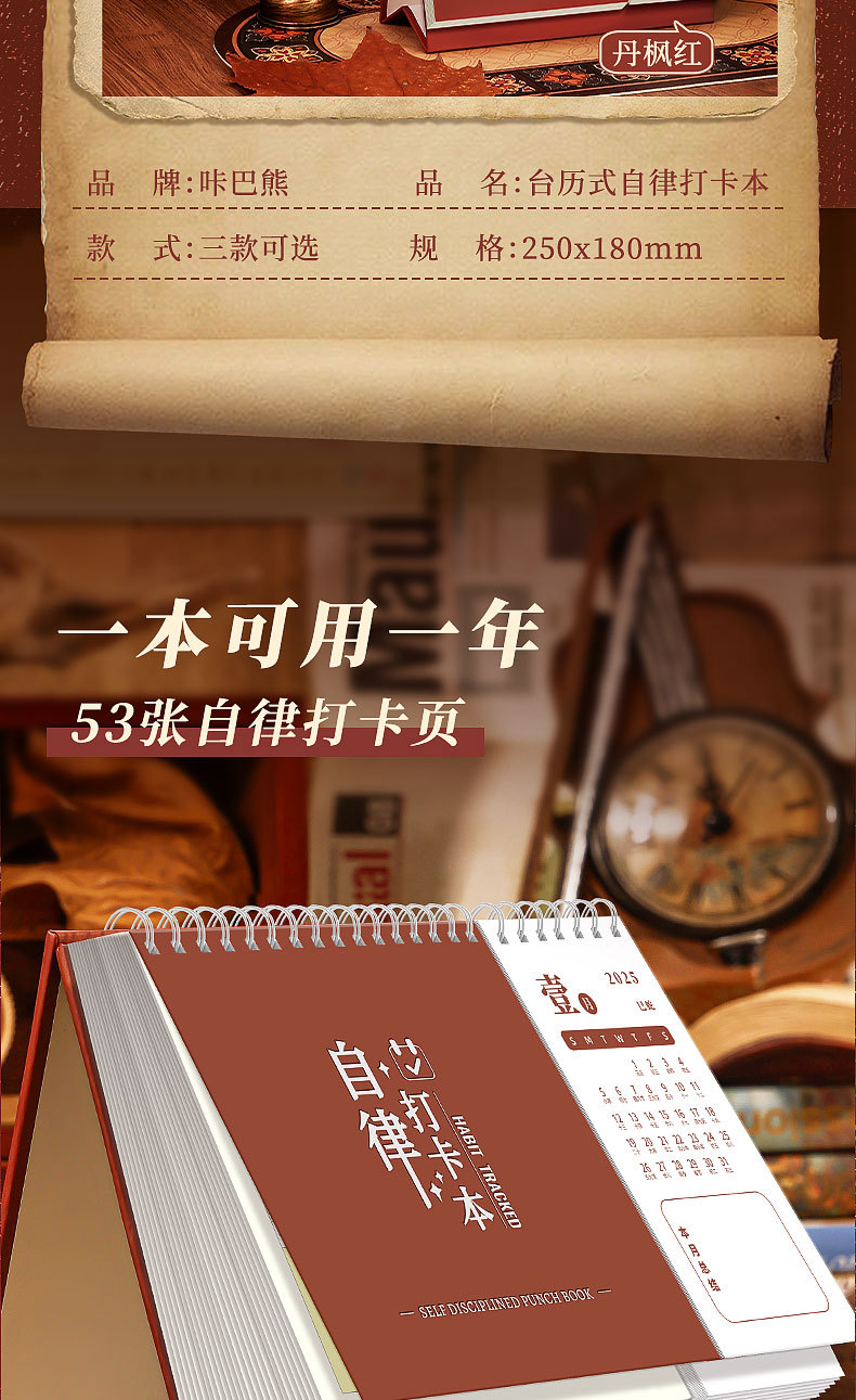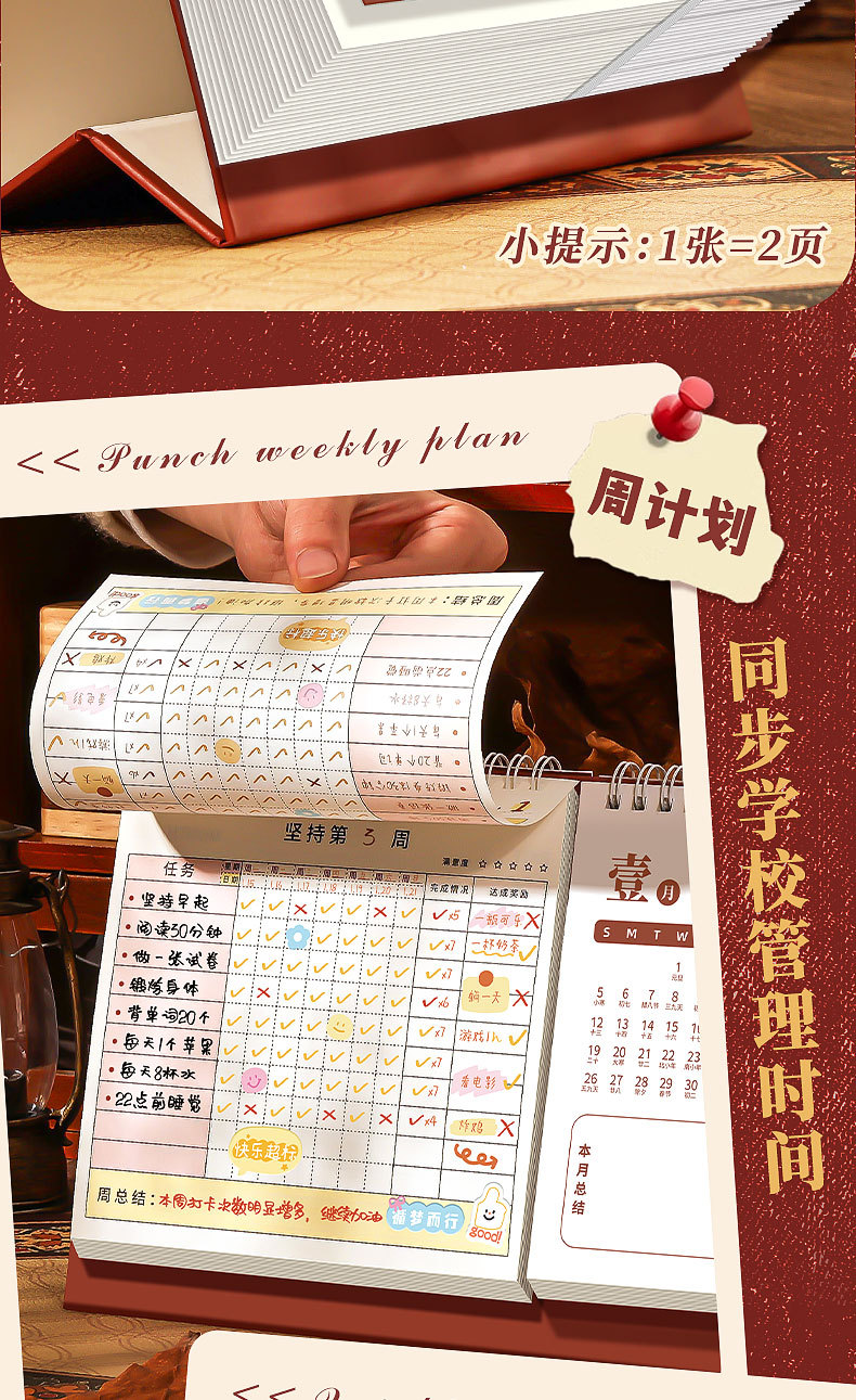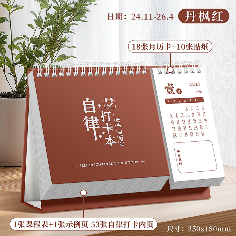 calendar-style self-discipline card-danfeng red
