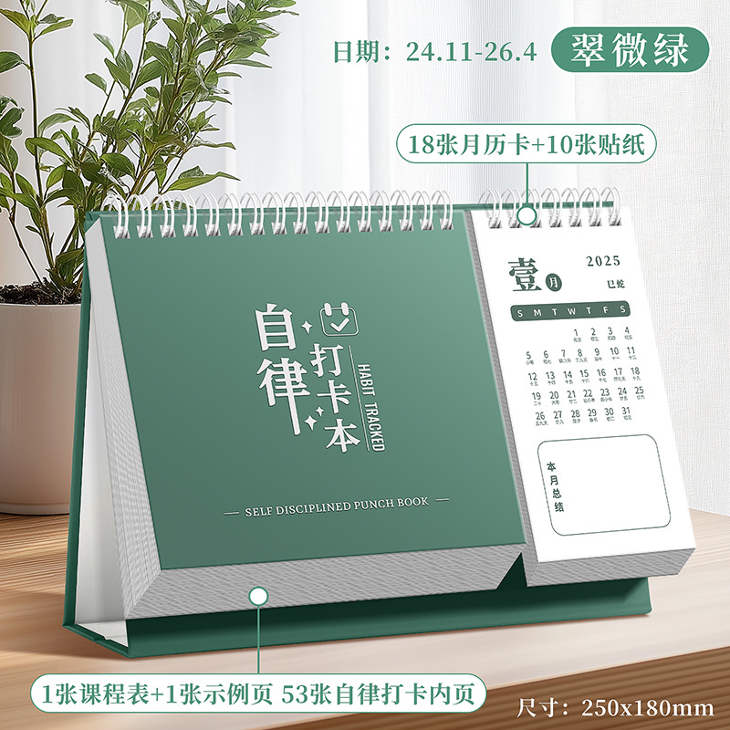 calendar-style self-discipline card-emerald green