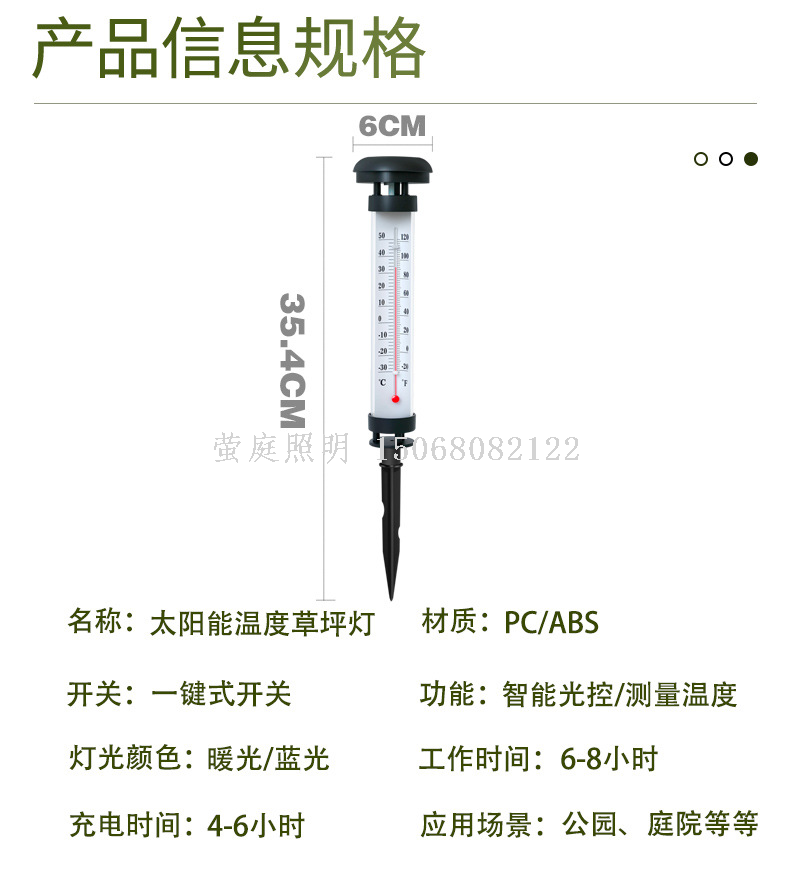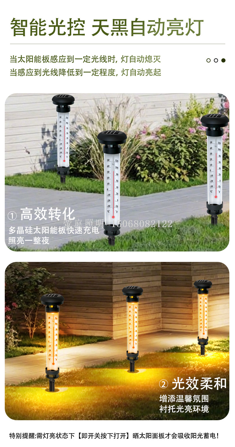 patent new solar outdoor waterproof thermometer ground lamp 中文版