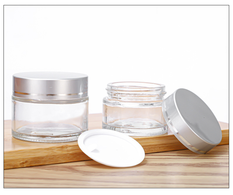 transparent bottle + matte silver cover + hand pull; 50g; glass
