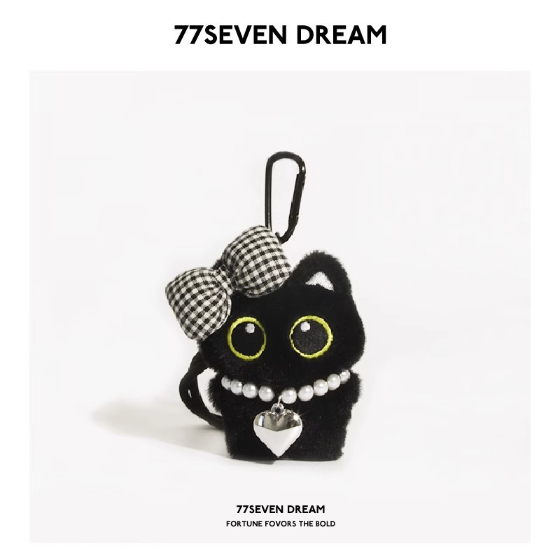 keychain big eye cat + white plaid knot love necklace