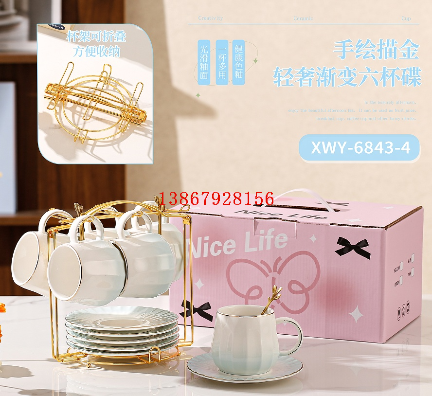 hand painted golden outline light luxury gradient six cups and saucers metal racket six cups and saucers