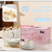 Hand-painted gold-lined light luxury gradient six-cup dish with metal stand