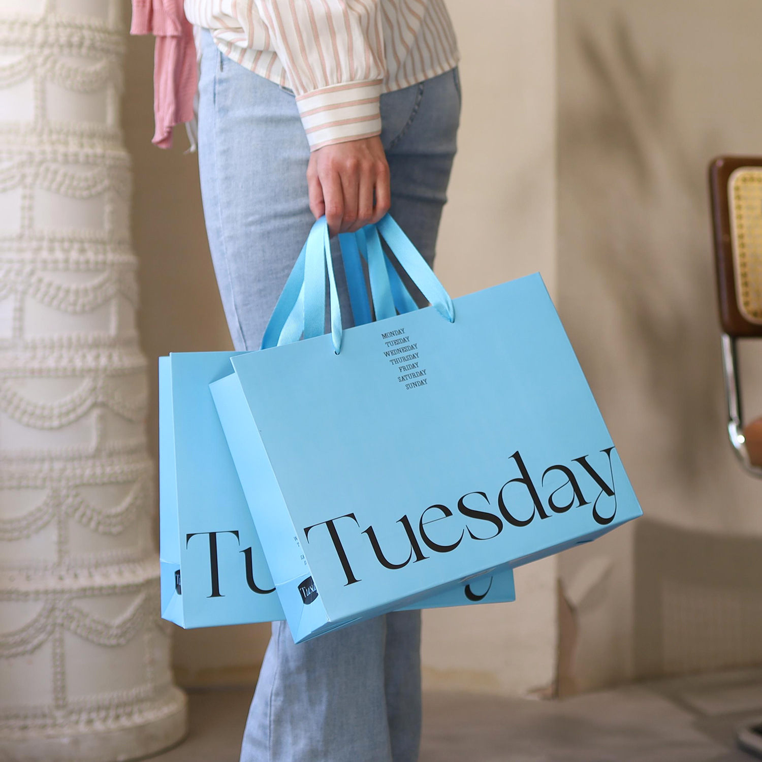 ins blue foreign trade clothing store portable paper bag custom logo high sense cross-border shopping bag packing bag custom