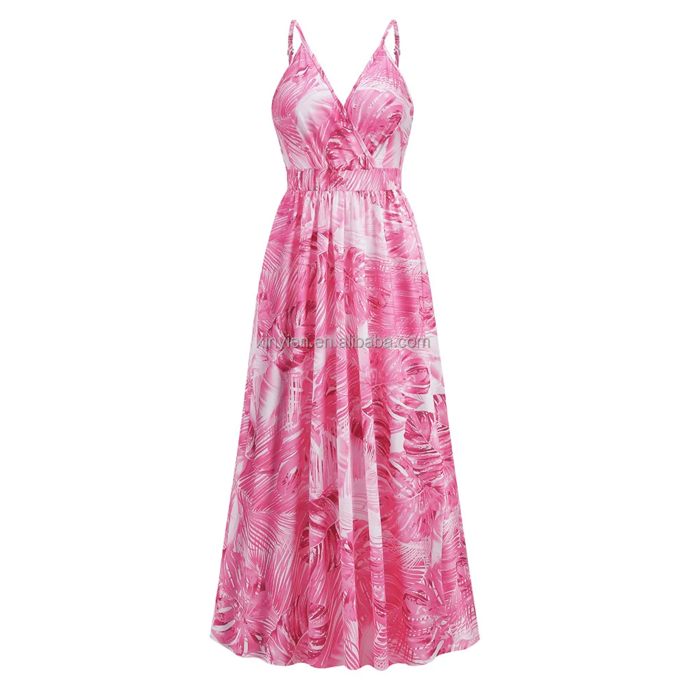 Women's New Bohemian Print Long Floor-Length Cross-Border Foreign Trade Sexy V-Neck Halters Swing for Day Club Mix