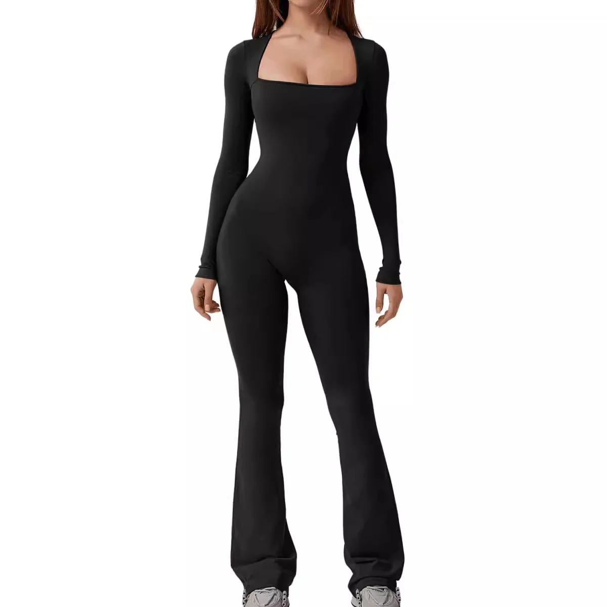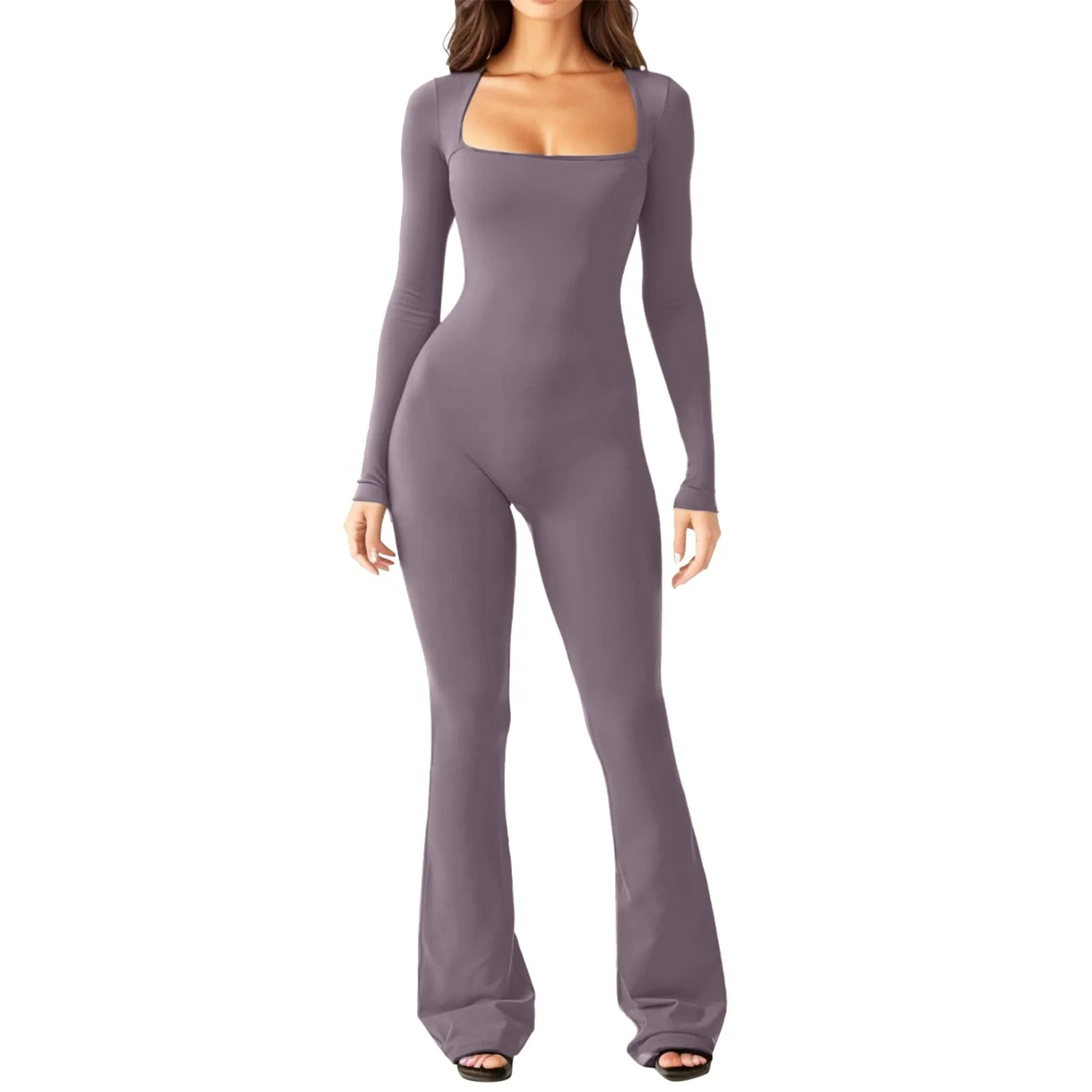Women Yoga Jumpsuits Scoop Neck Long Sleeve Workout Bodycon Romper Ribbed Seamless Sport Jumpsuits