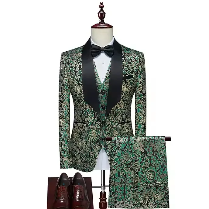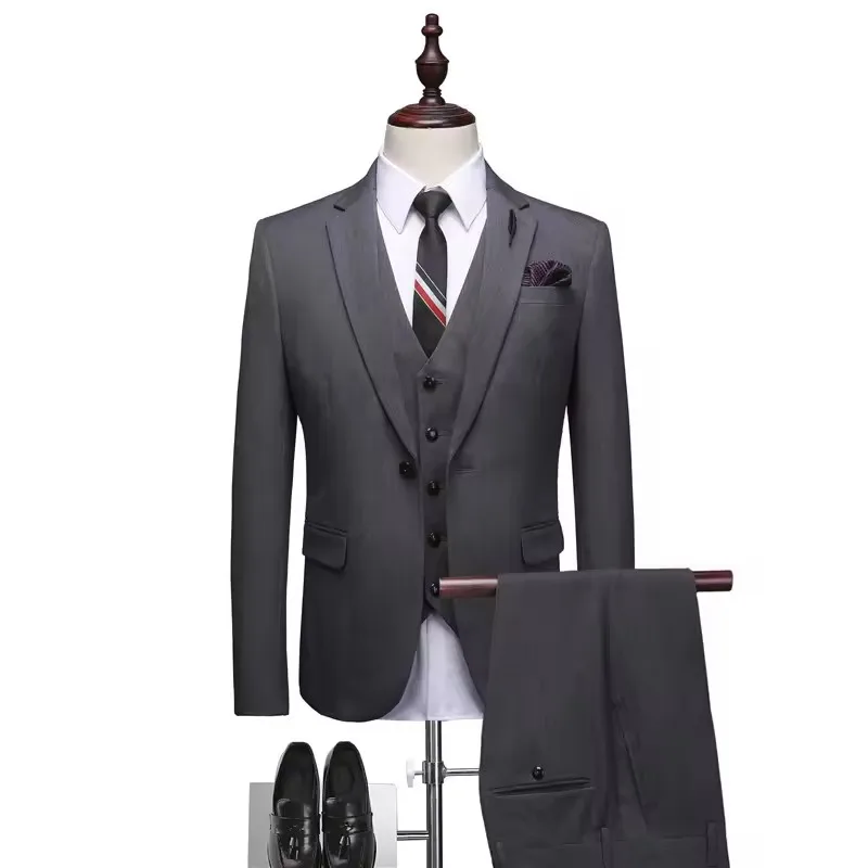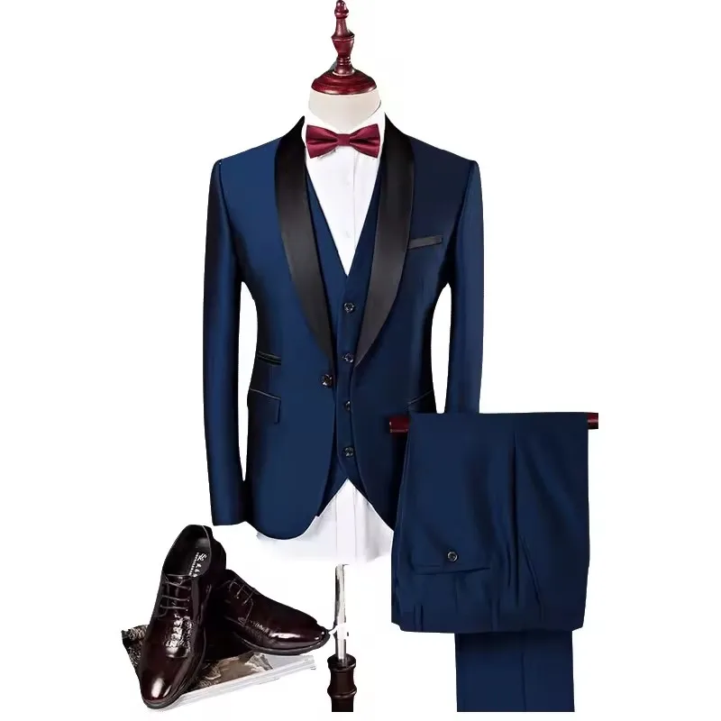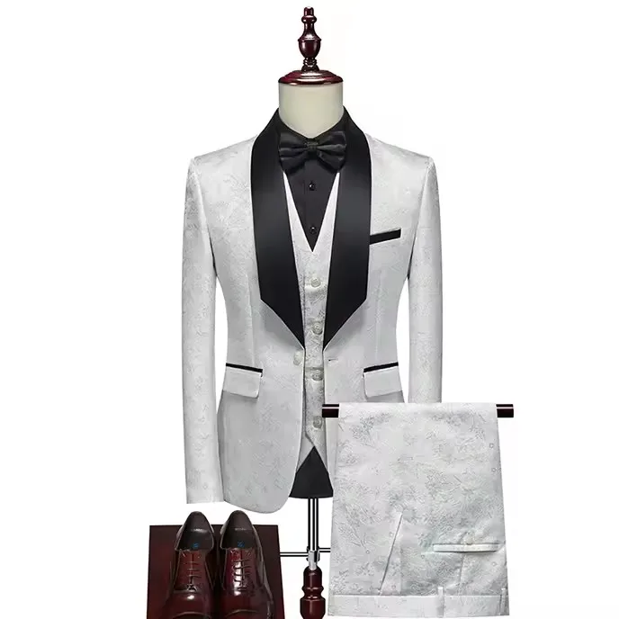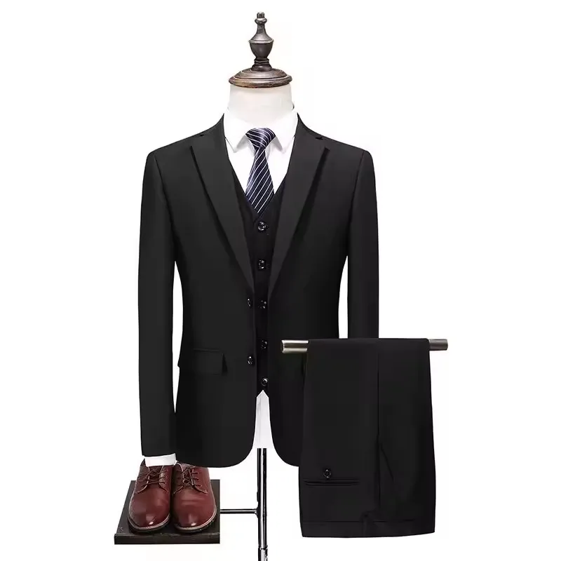 Men's 3-Piece Slim Fit Tuxedo Suit Casual Blazer with Two Buttons Waterproof Breathable Fabric Pants for Business Wedding Prom