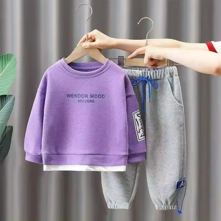 Baby Boy Color Block Sweatsuit Clothes Long Sleeve Hoodie Sweatshirt Top and Pants Fall Winter Outfit Set