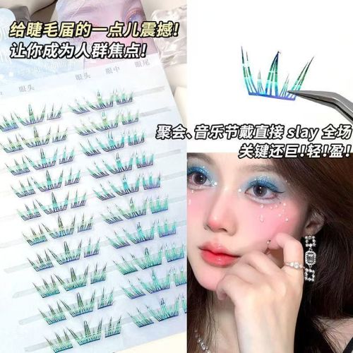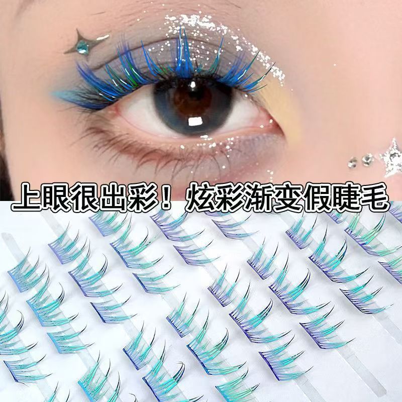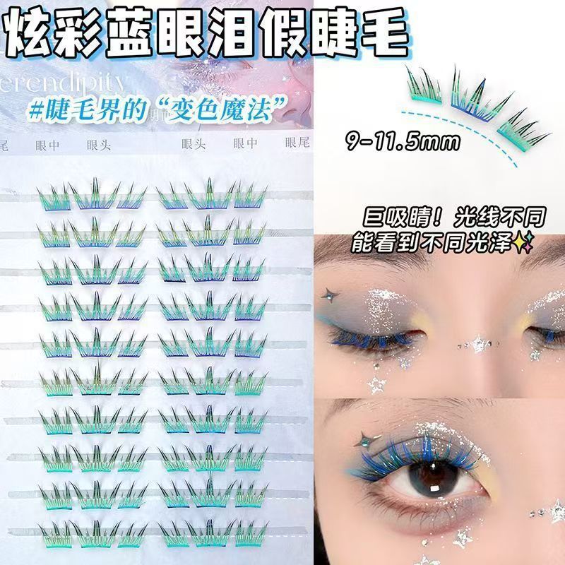summer colorful blue tears sea salt false eyelashes sea salt flavor dream single cluster curling contrast color split false eyelashes 中文版