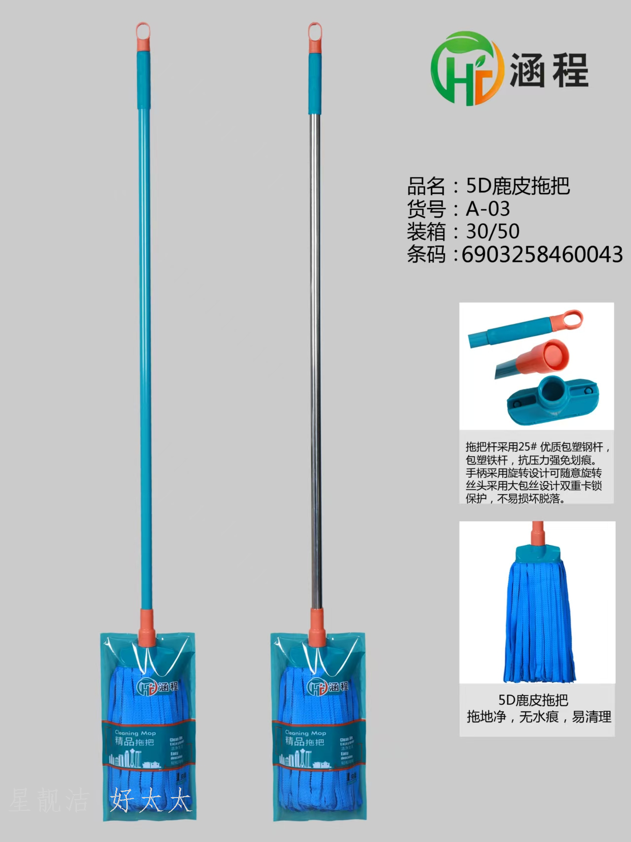 5d deerskin mop super absorbent lint-free household cleaning gadget 中文版