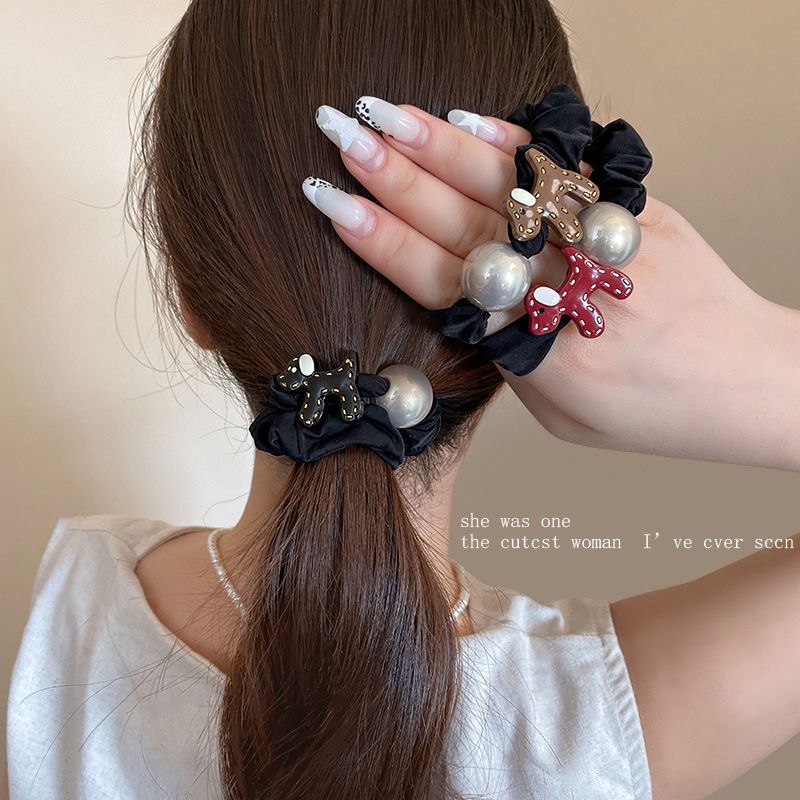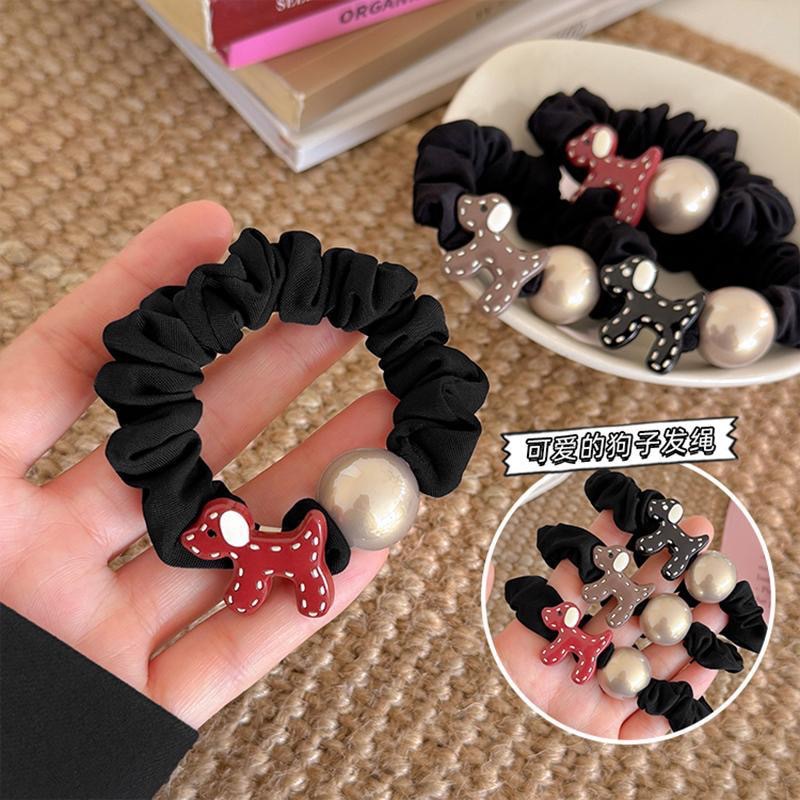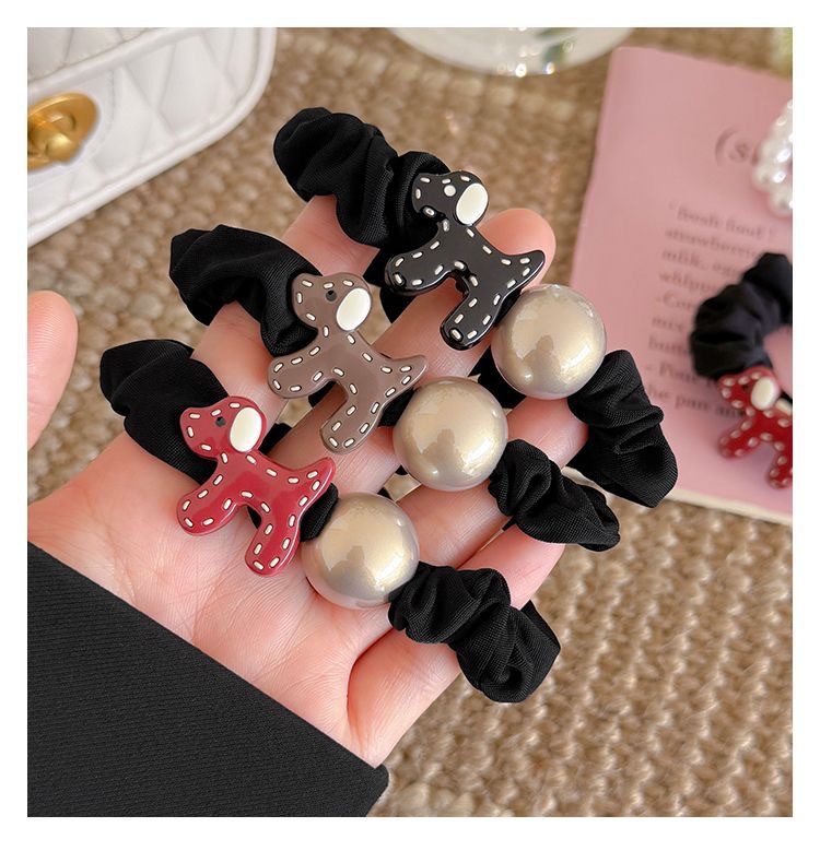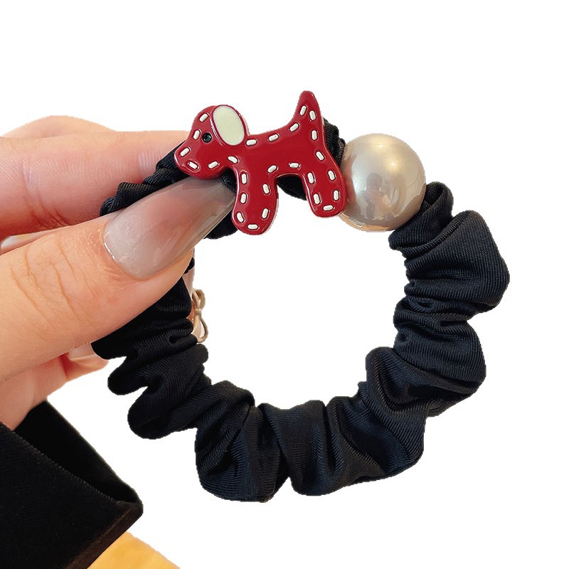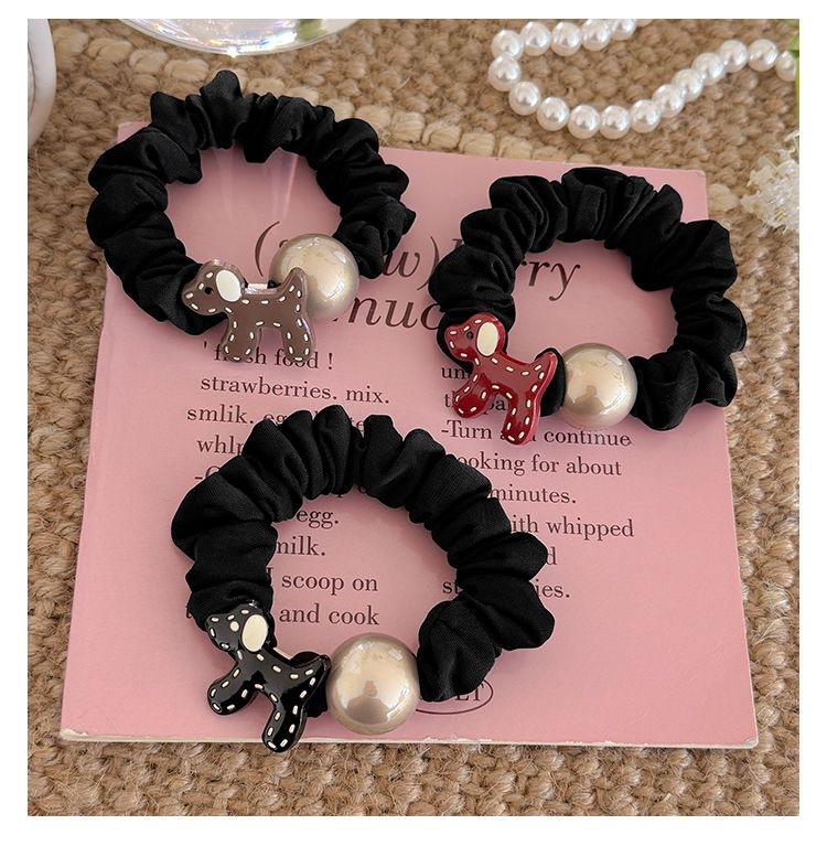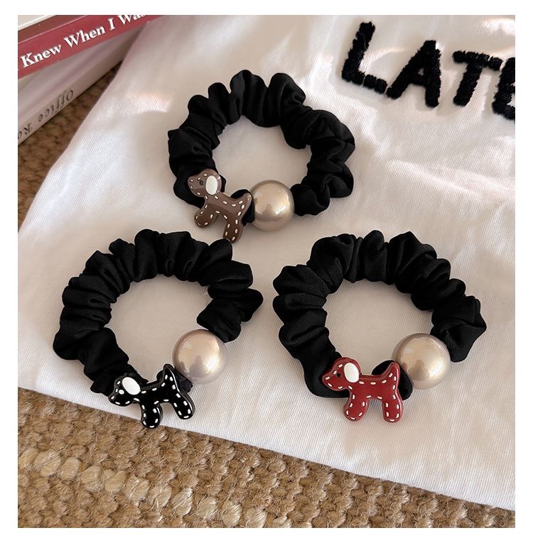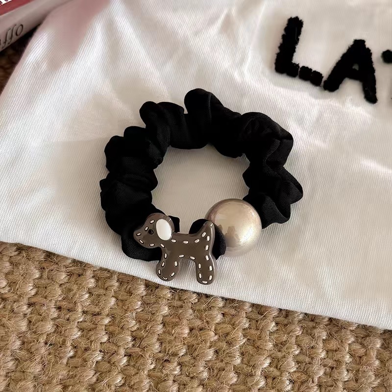 temperament puppy pearl hair ring-black