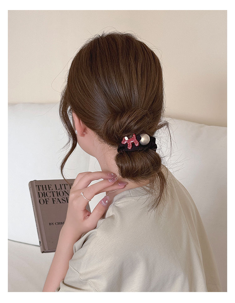 temperament puppy pearl hair ring-red