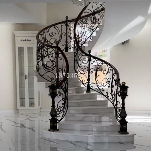 european-style hand-forged curved flower wrought iron stairs armrest villa fence hot dip galvanized anti-corrosion treatment 中文版