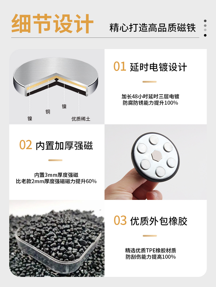 rubber-coated strong magnet round suction cup holder car sports camera does not hurt paint hanging led spotlight strong magnetic base 中文版