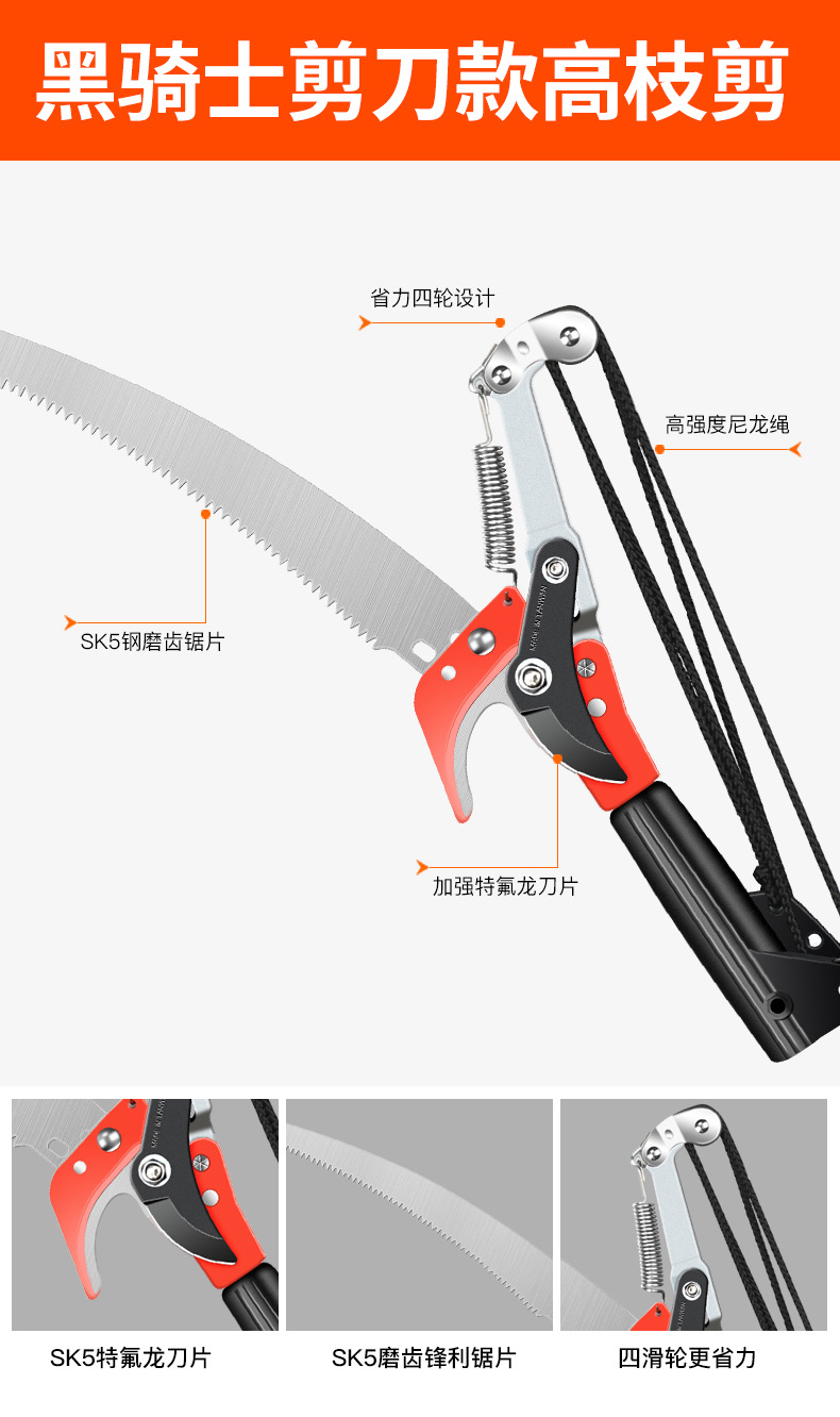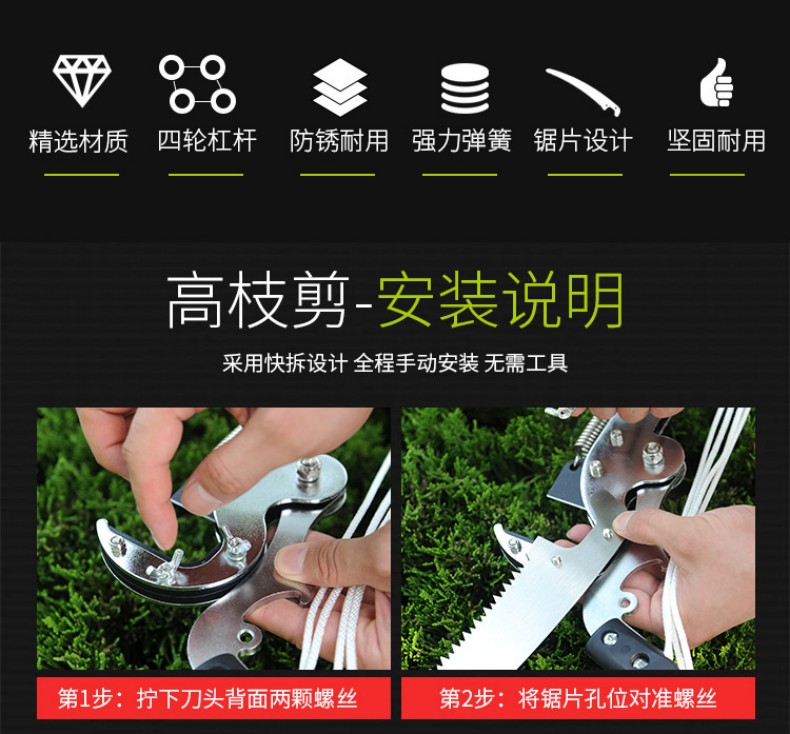 garden buckle aluminum handle high altitude pruning saw aluminum alloy telescopic high branch saw rod pruning wholesale high branch shears pole 中文版