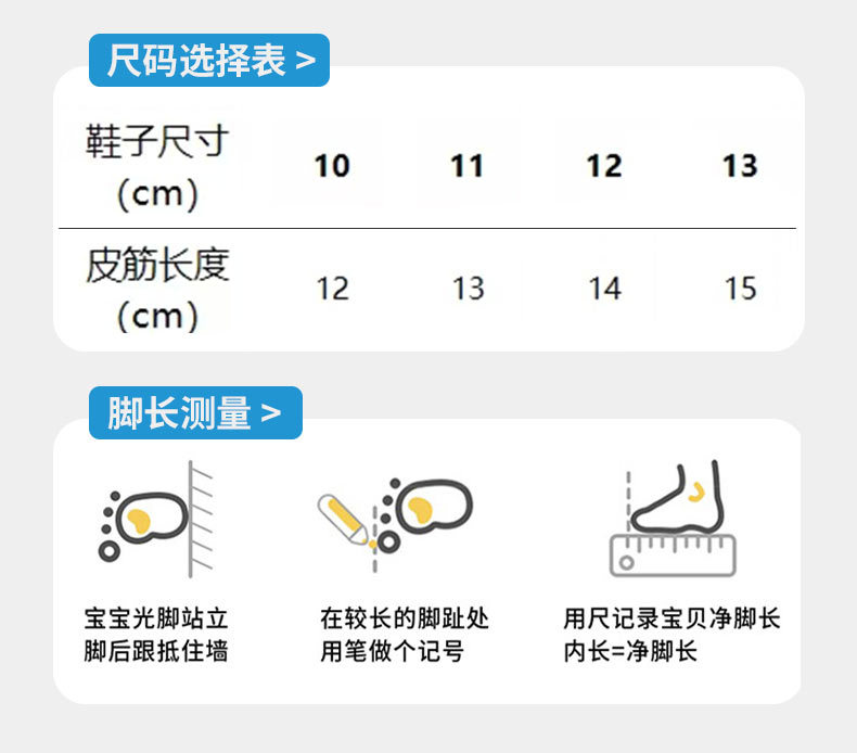 Sizing is for reference only. Due to different developmental stages of each baby, it is recommended to measure the baby's foot length first. Buy the shoe with a length that is 0.5cm longer than the baby's foot length. If the baby has thick feet or high insteps, it is recommended to choose a shoe with a length that is 1cm longer than the foot length for a more suitable fit.