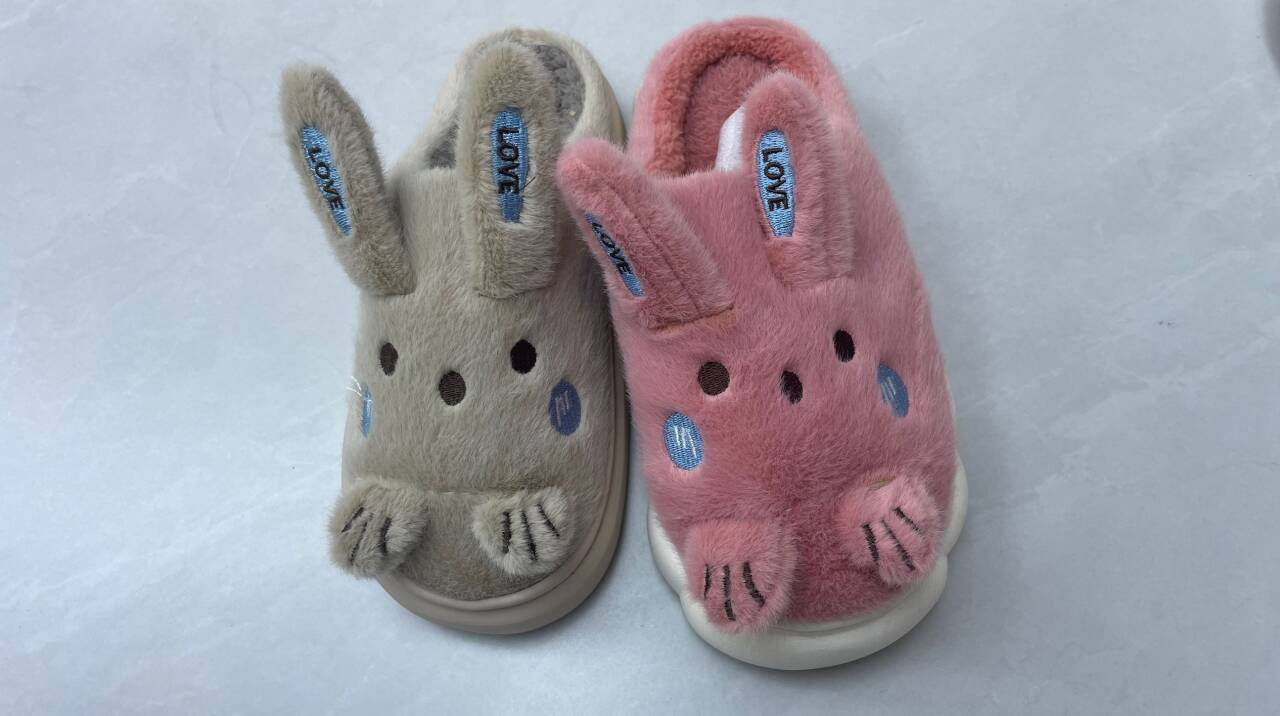 winter children's new cute cartoon rabbit cotton slippers home warm comfortable indoor non-slip sole 中文版