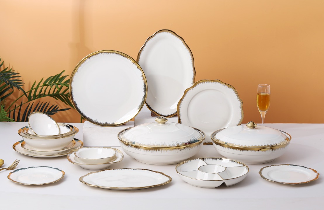 高温电镀陶瓷餐具具备高档气质和电镀工艺美丽线条结合,为高端餐具增加了美感,设计感满满,快来约吧