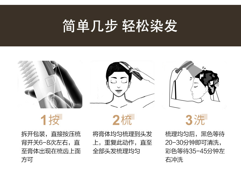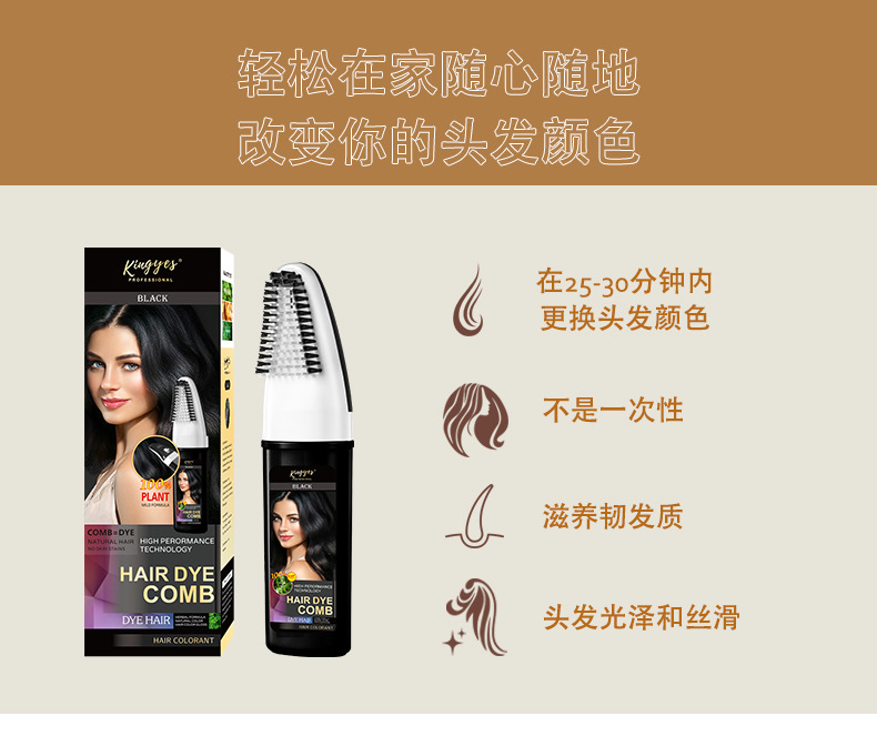 Colored Hair Dye - Hair Dye Comb - One-Stroke Black Hair Dye Cream