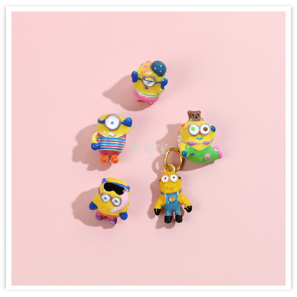 creative color painted cute cartoon three-dimensional minions colorful oil necklace beads beaded diy handmade jewelry accessories 中文版