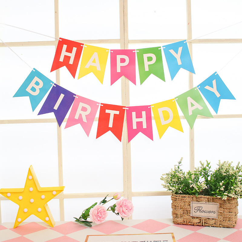 birthday party decoration happy birthday swallowtail gilding hanging flag birthday letter banner fishtail hanging flag