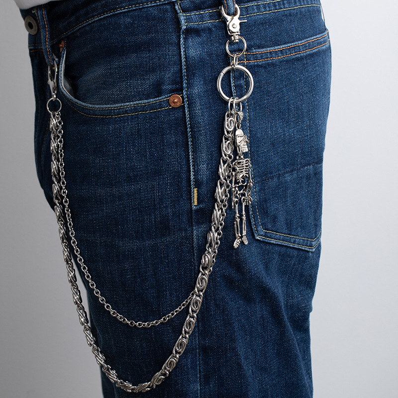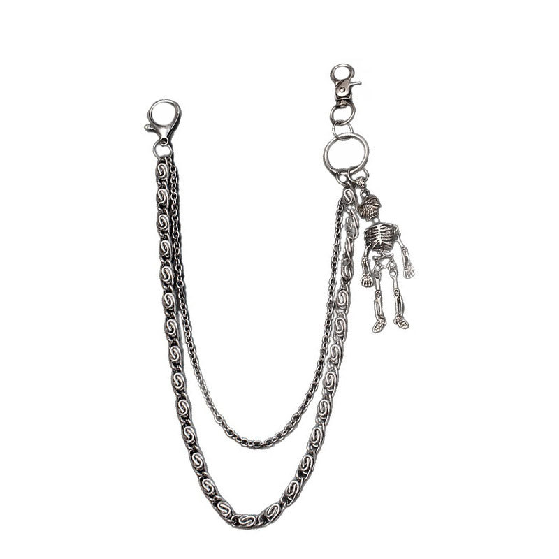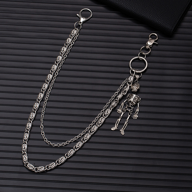 Cross-border fashion gun black double-layer personality chain human skeleton pendant trend punk hip-hop metal pants chain jewelry wholesale supply