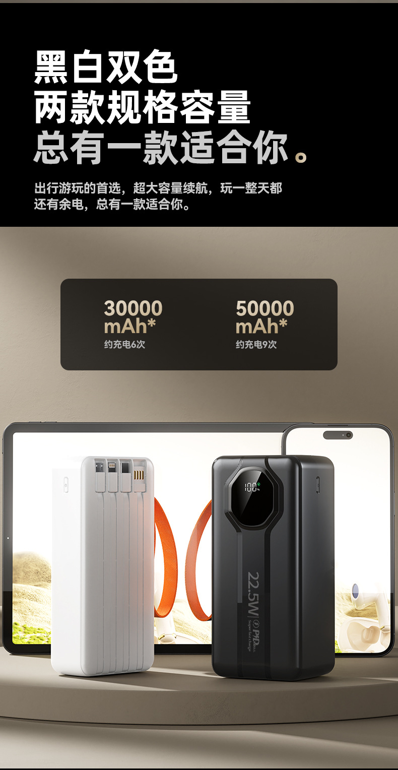 new portable 30000 ma mobile power pd fast charging digital display large capacity portable power