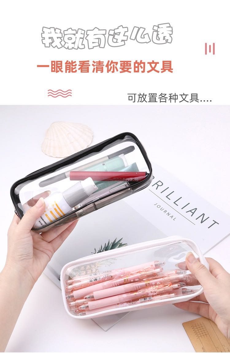 large capacity transparent stain-resistant pencil case stationery case stationery box 中文版