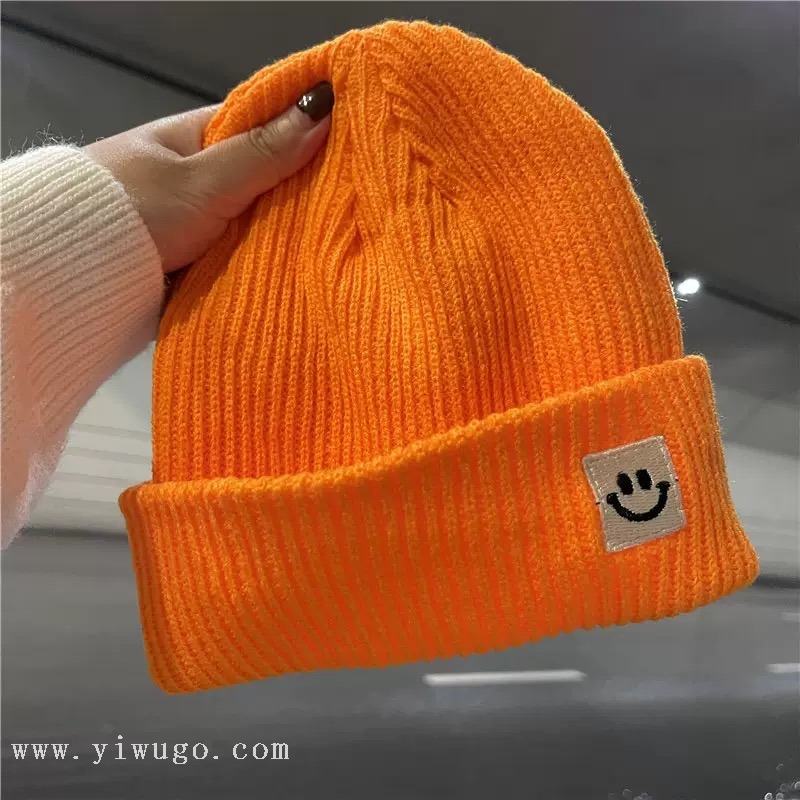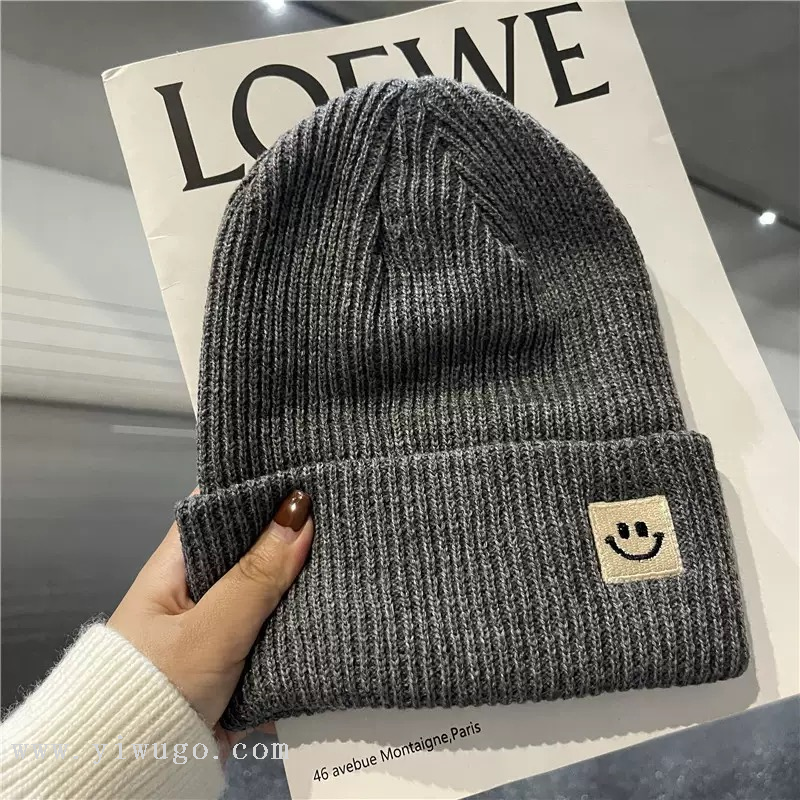 japanese cute smiley face wool hat for men and women autumn and winter warm and trendy all-match earflaps knitted hat fashion 中文版