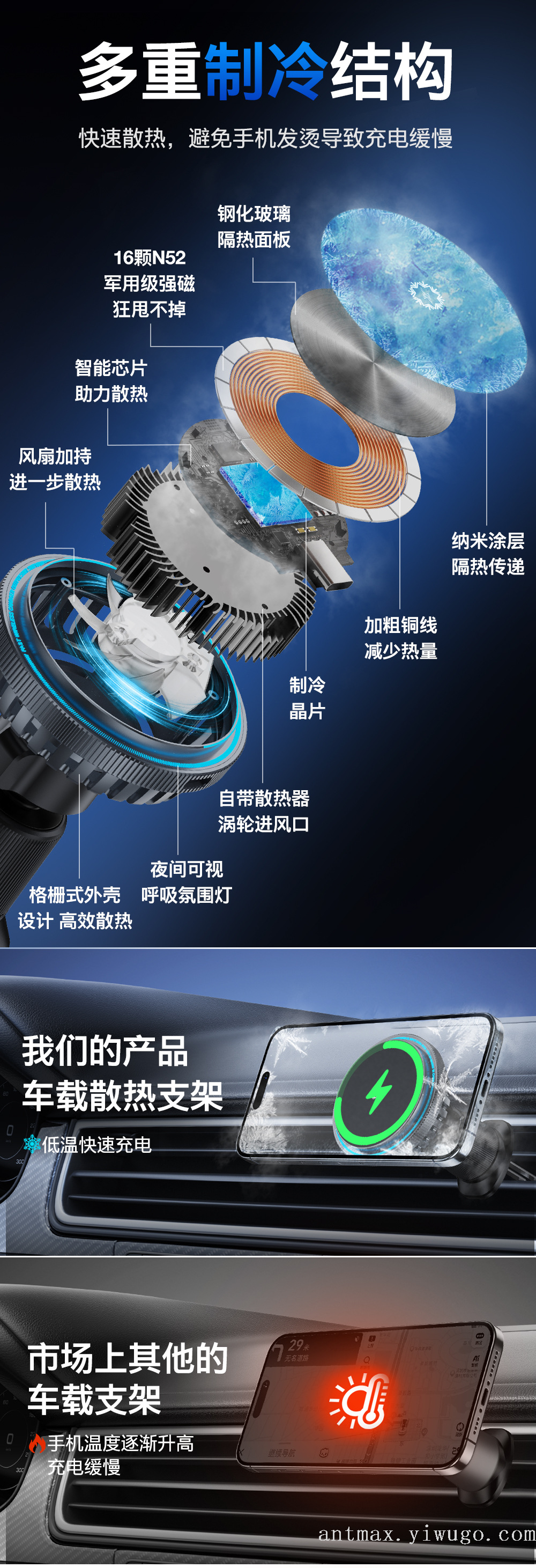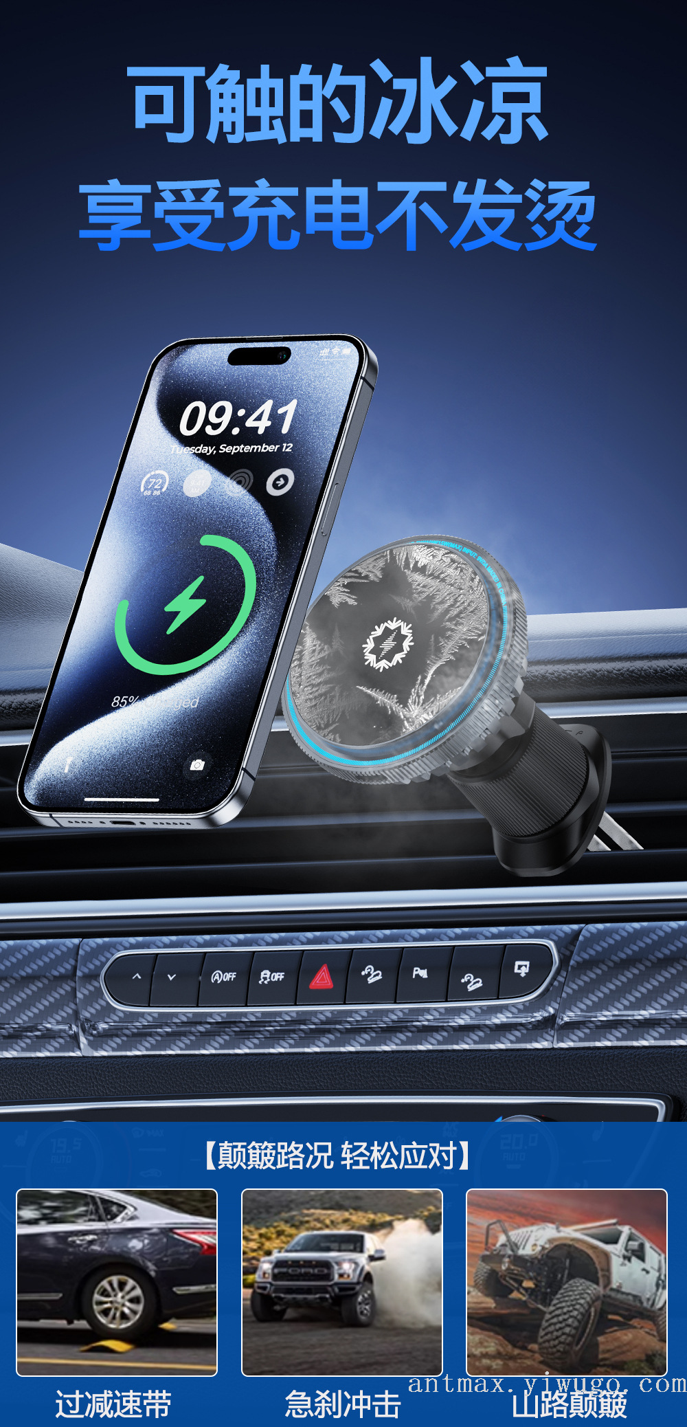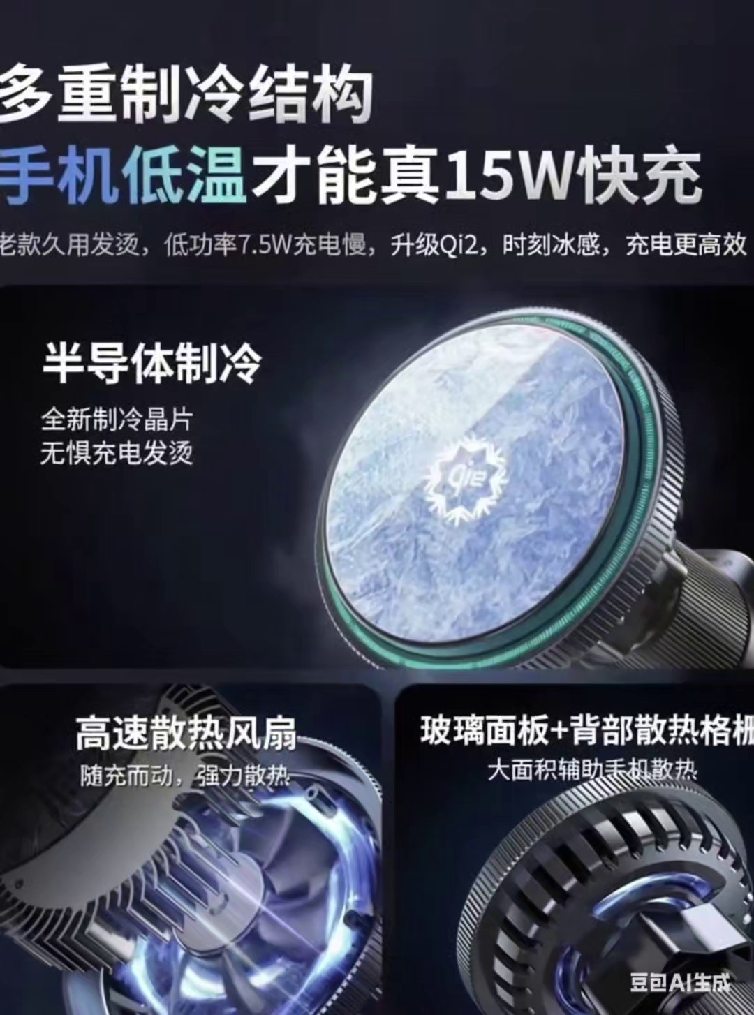 Cooling Fan Semiconductor Cooling Qi2 Magnetic Wireless Fast Charging Car Phone Holder 中文版