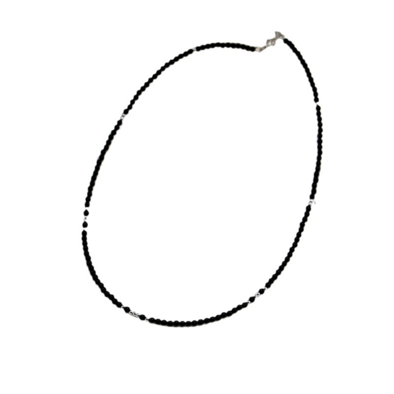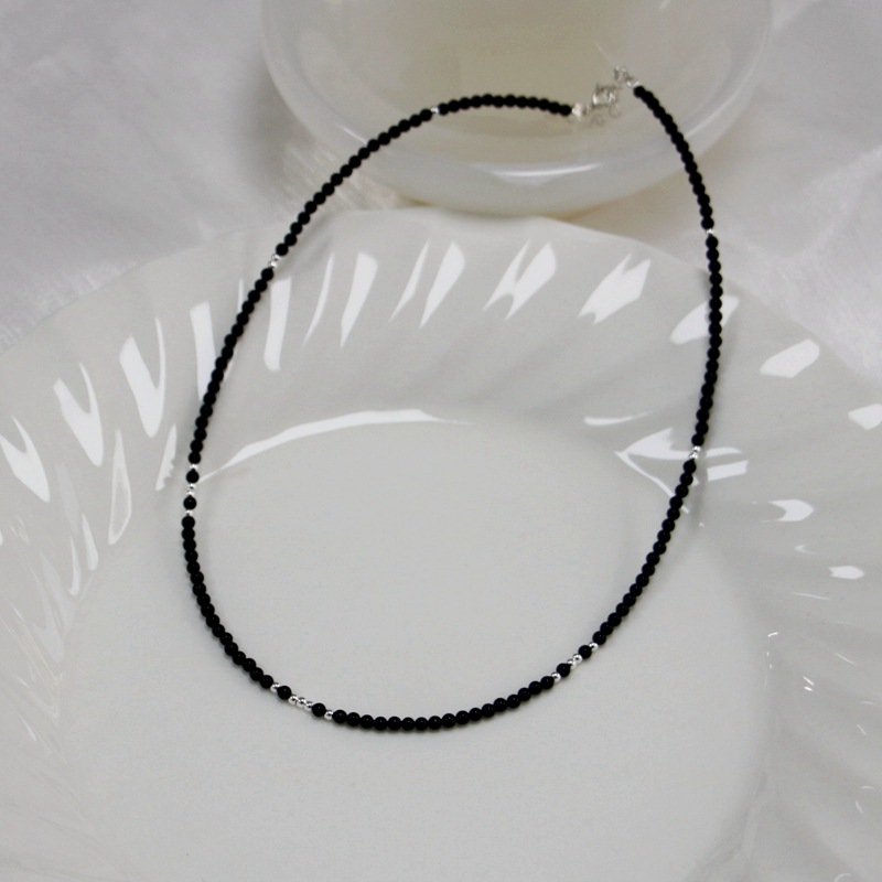 40 + 3cm-natural black agate +925 sterling silver