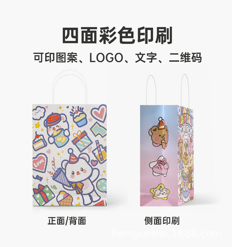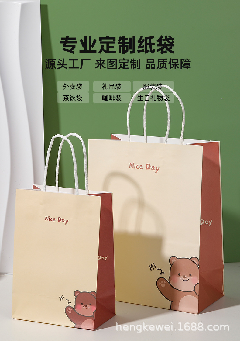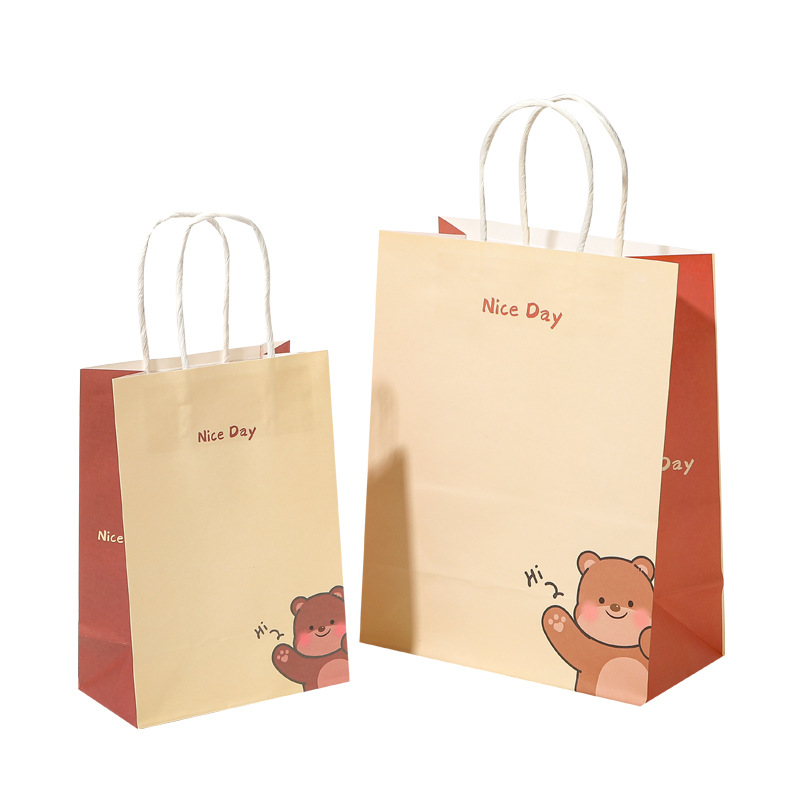 xiaohongshu customized little bear cartoon cute tote birthday hand carrying gift bag paper packaging bags style gift bag 中文版