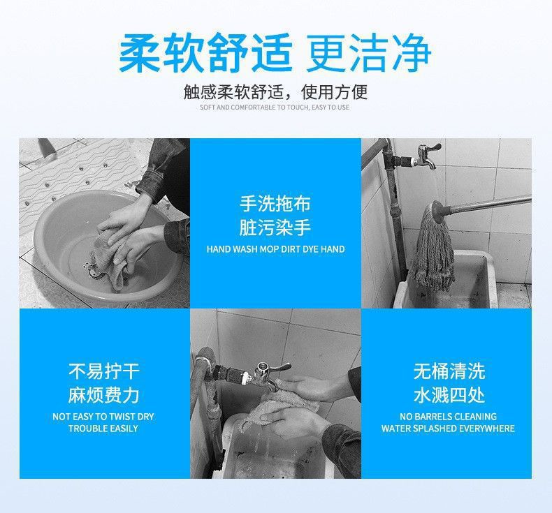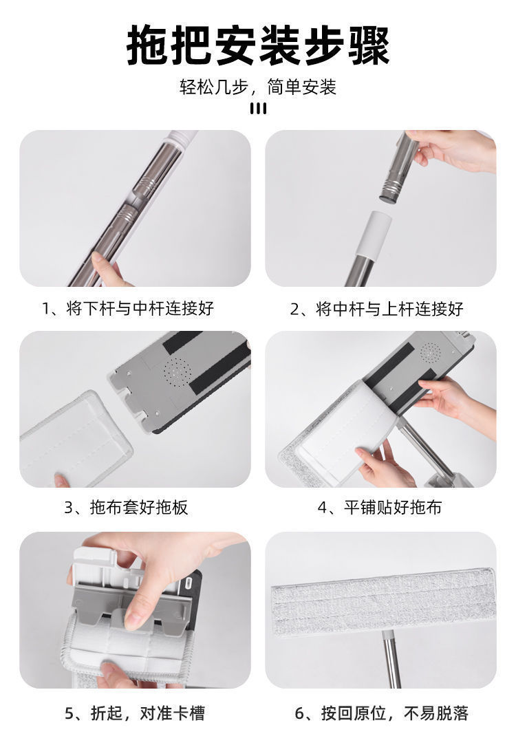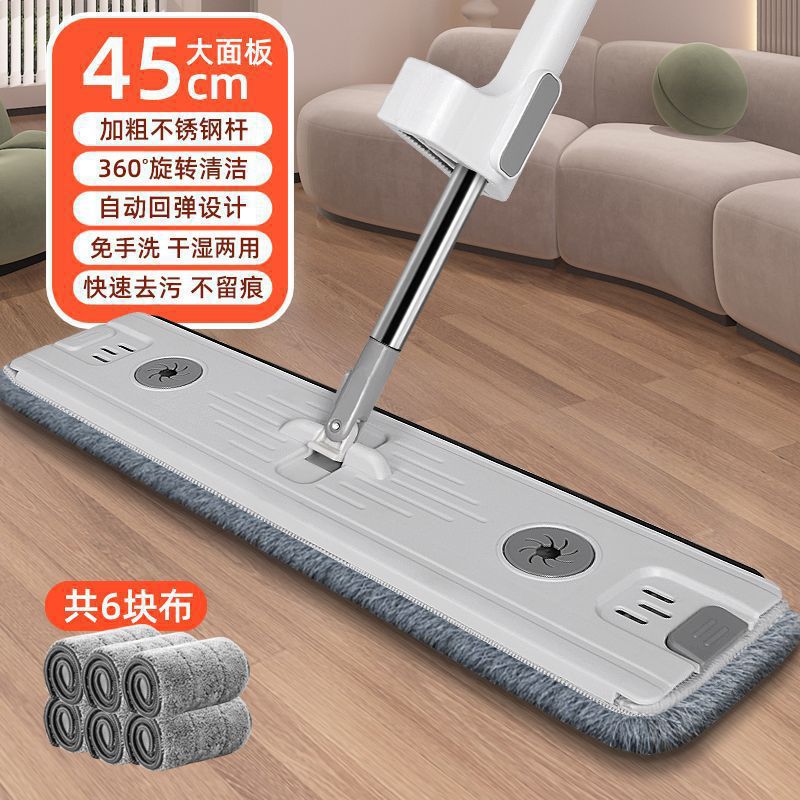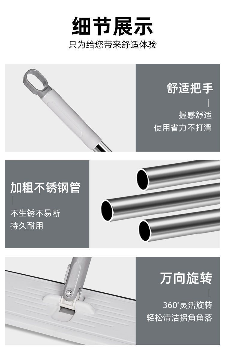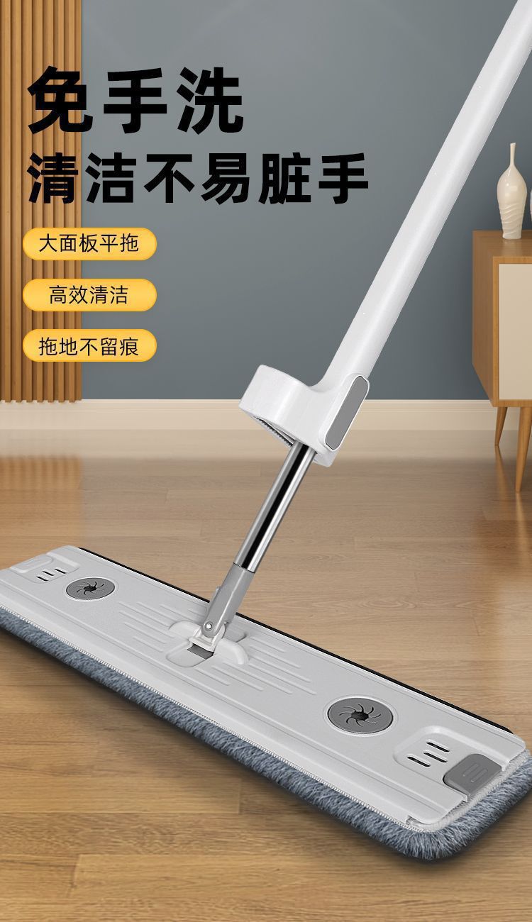 42cm flat mop household lazy people save time and effort mop cleaning solution lengthened wiper hand washing free mop 中文版