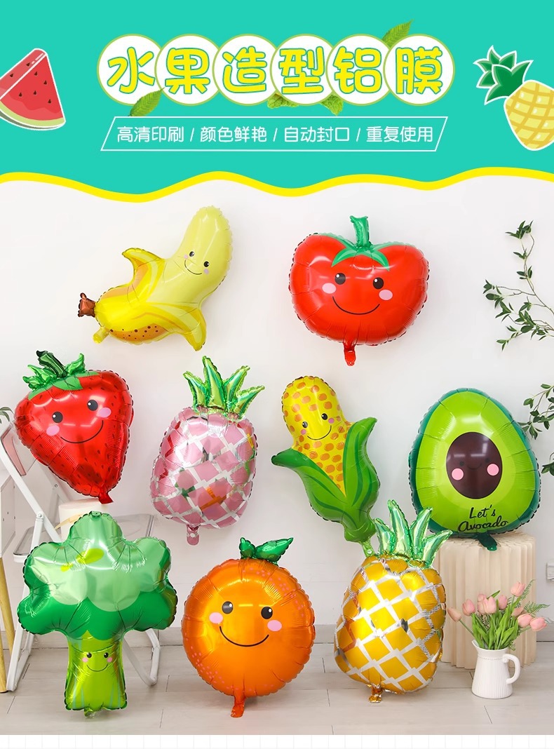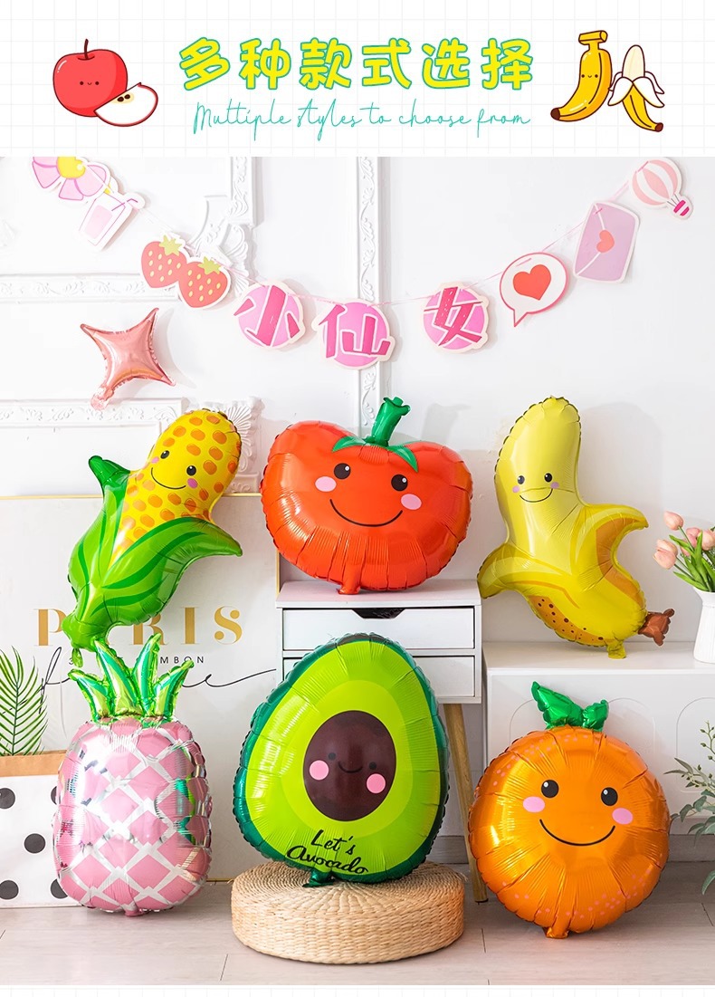18-inch fruit balloon aluminum film cartoon pineapple watermelon party decoration baby birthday arrangement children balloon decoration 中文版