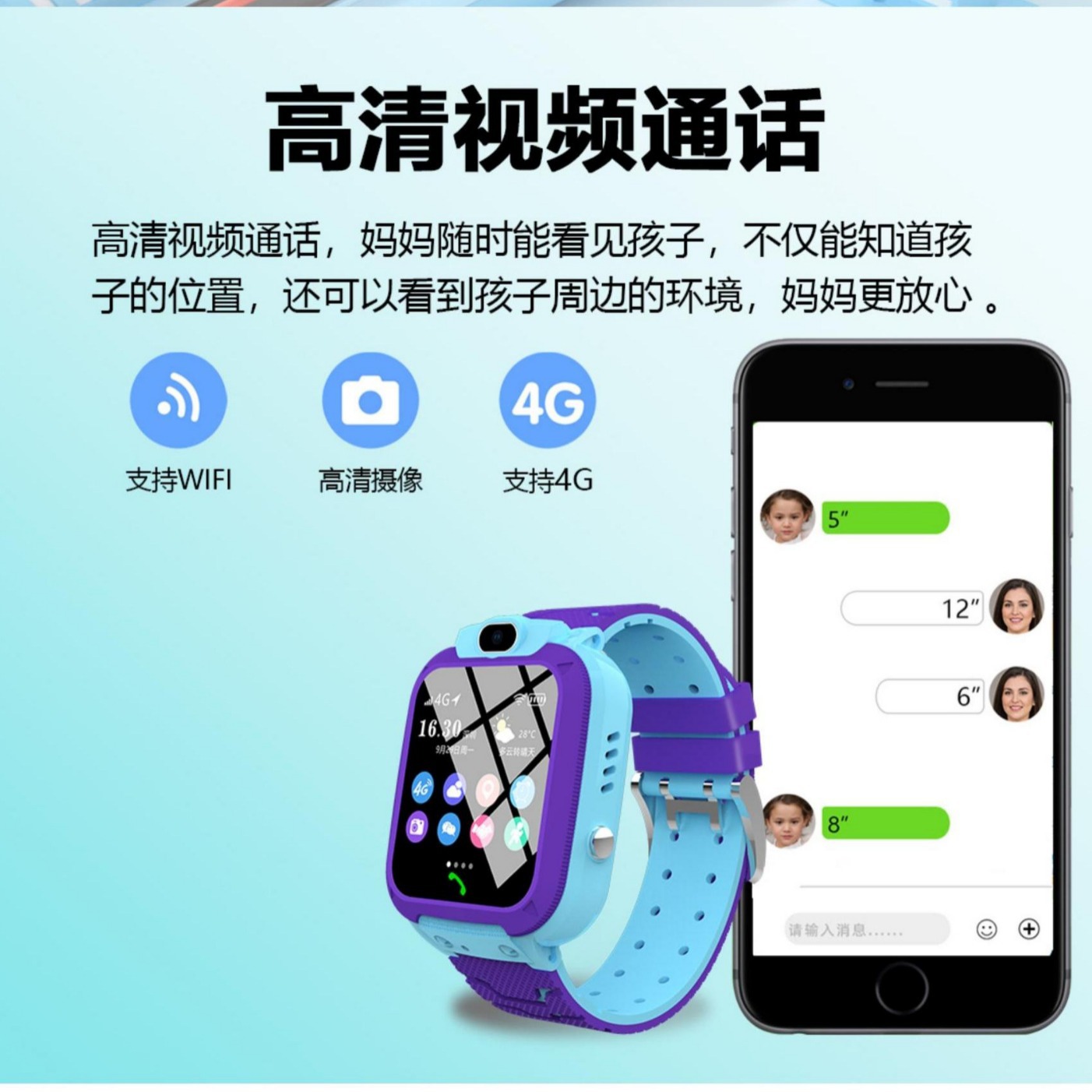 4g netcom student blue + voice micro chat + video call + precise positioning
