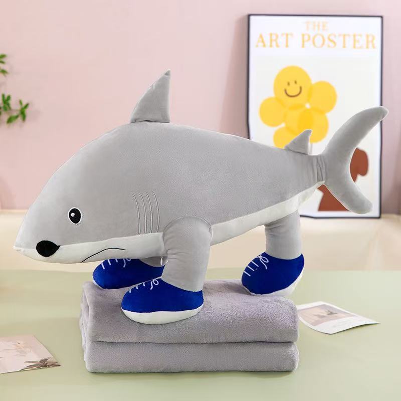 pillow blanket two-in-one mountain and sea sutra plush toy tung sahur shark wooden stick airable cover 中文版