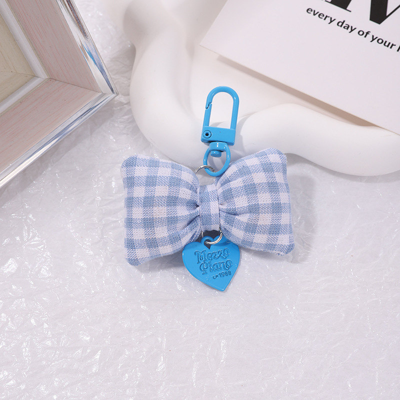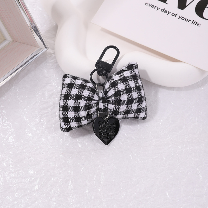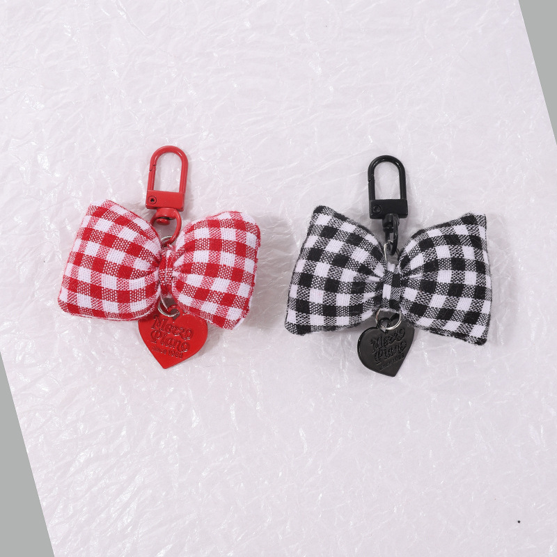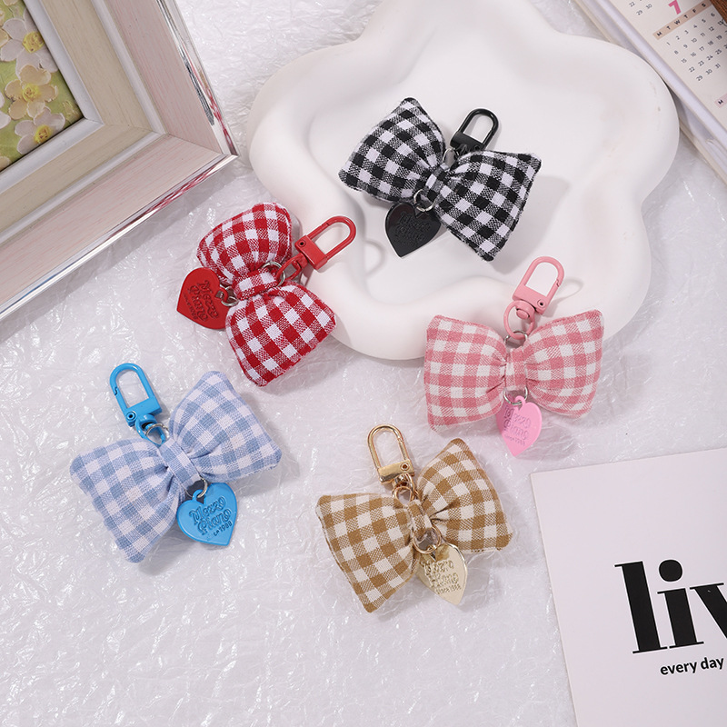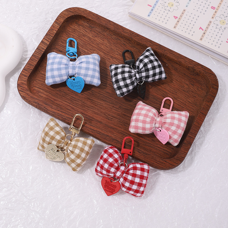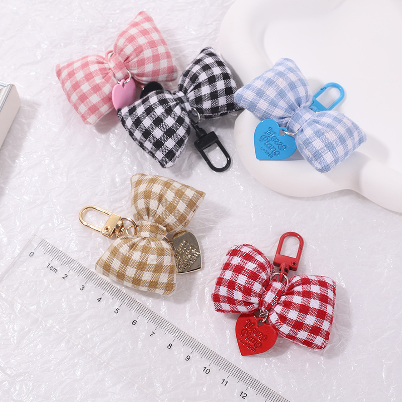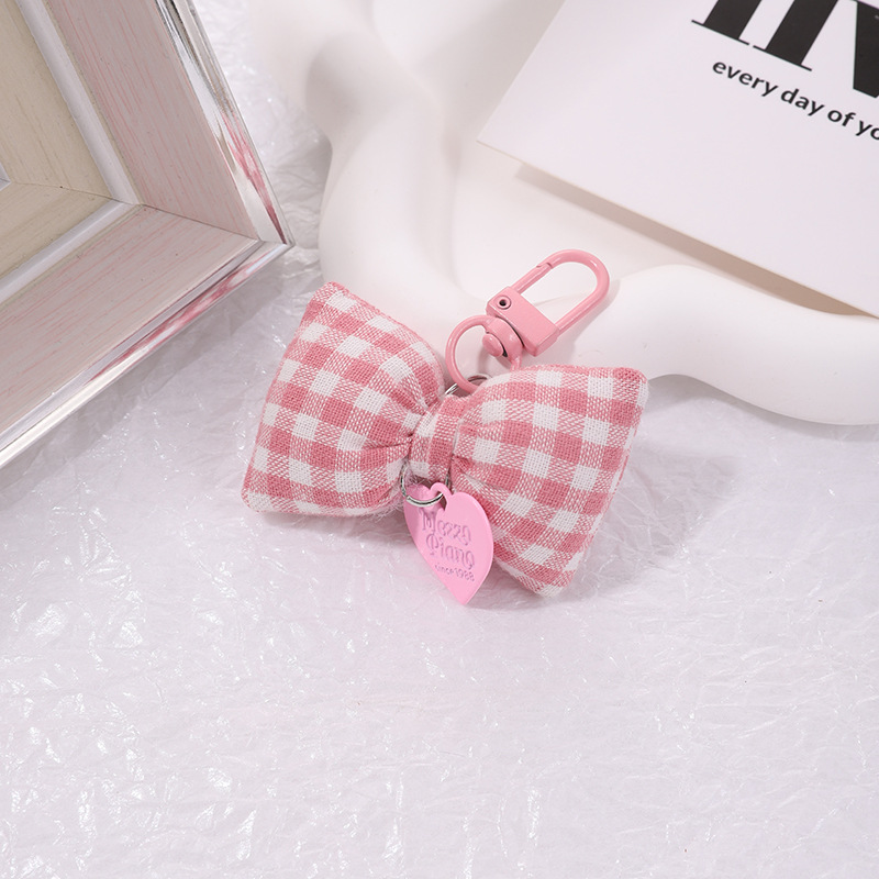 bow peach heart pendant cotton-filled plaid bow keychain girly sweet handbag pendant key cover hanging 中文版