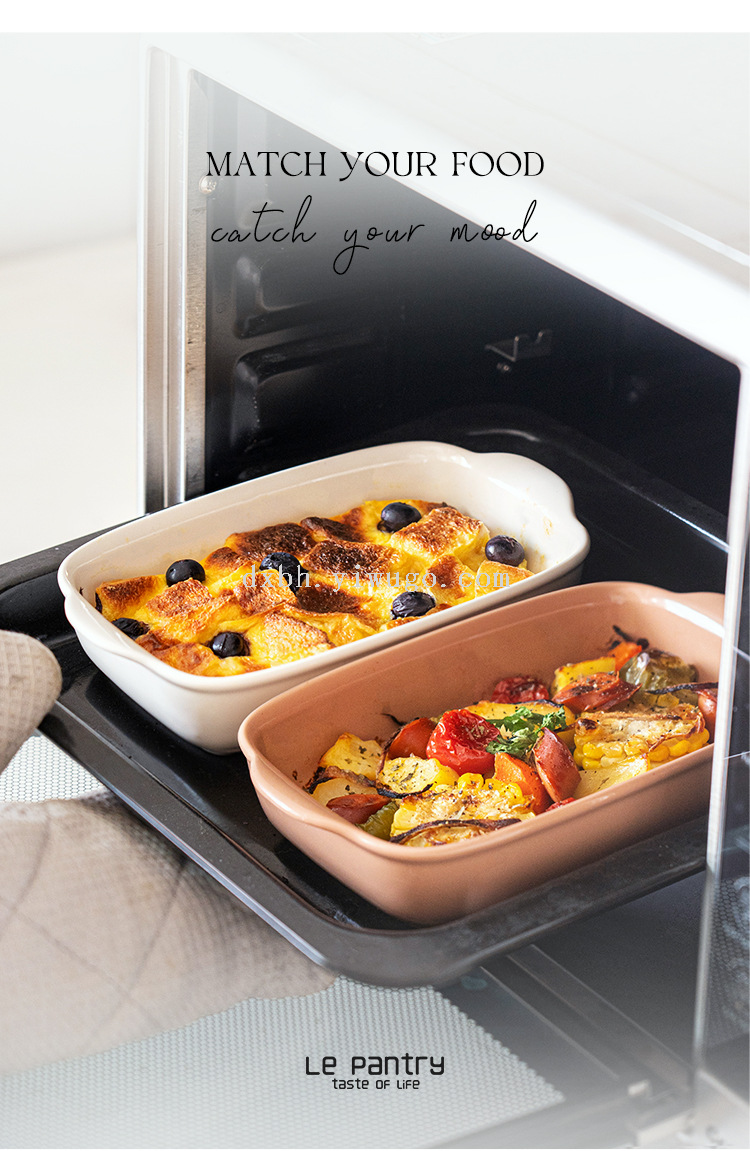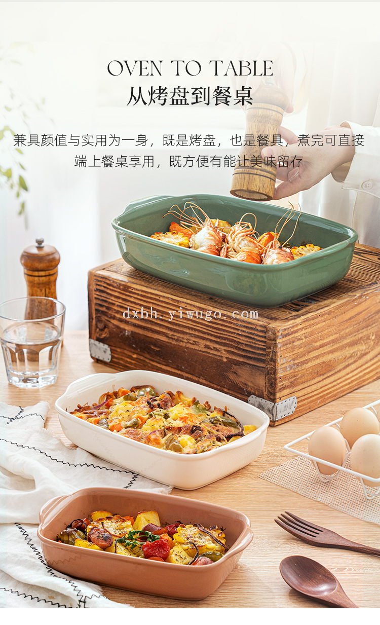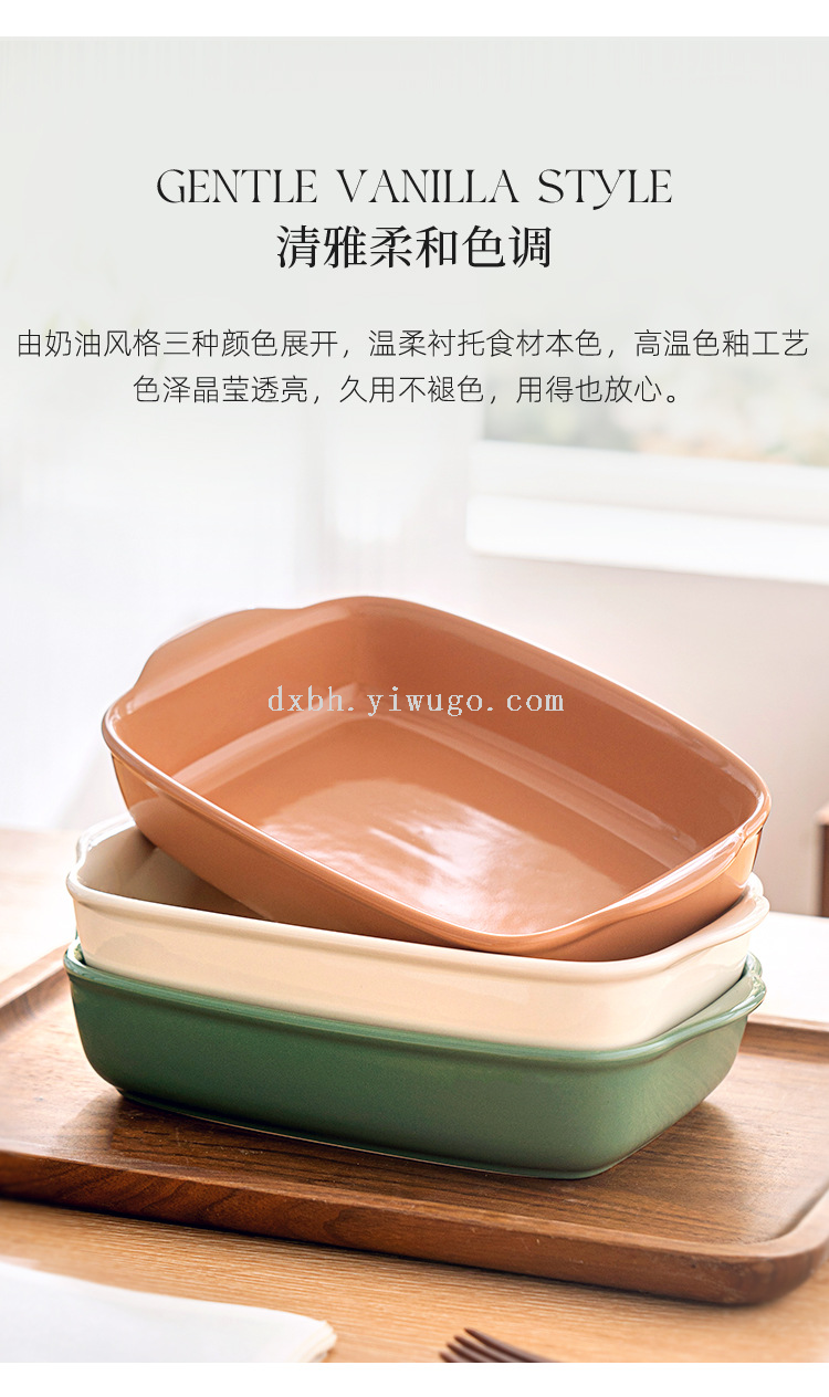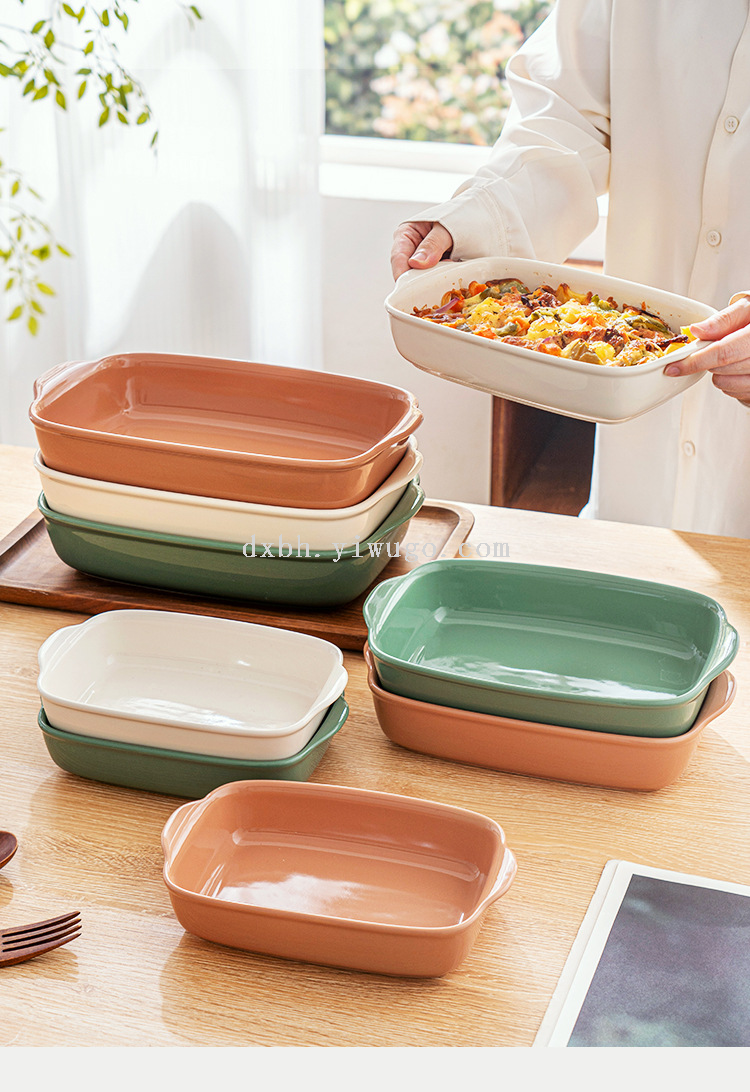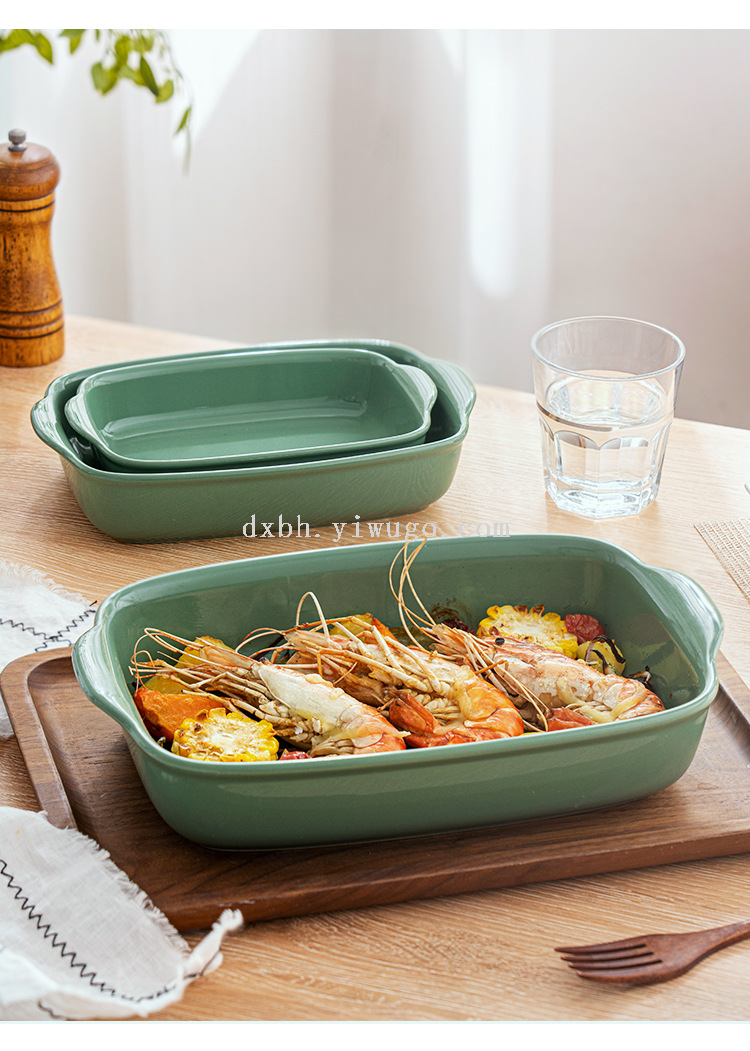 qingya glaze binaural ceramic ovenware baking at home plate simple rectangular baked rice turnip plate