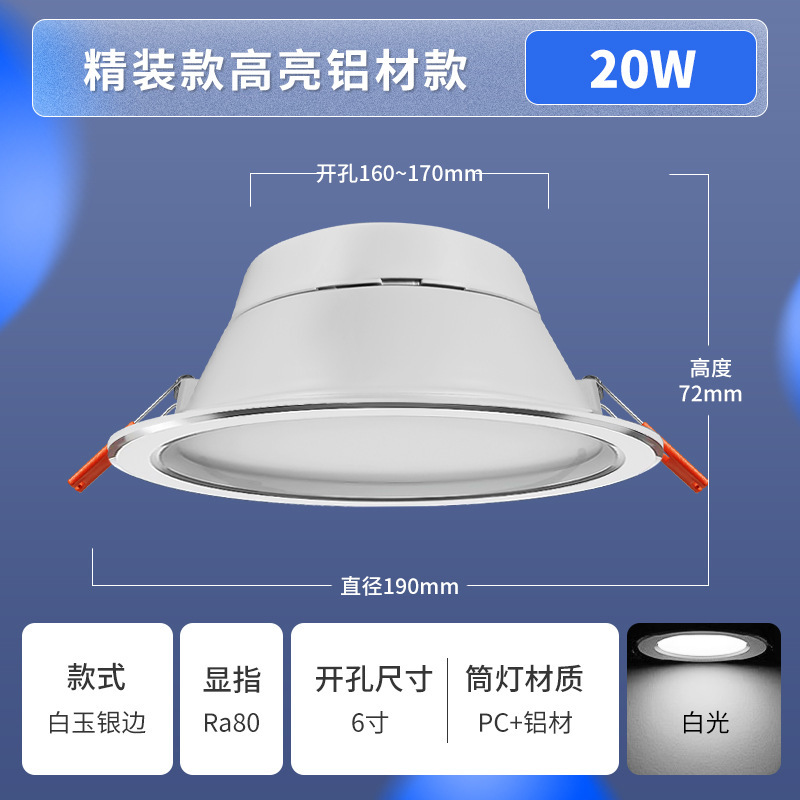 6-inch 20w hole 160-170mm4000k warm white [white jade silver edge]]