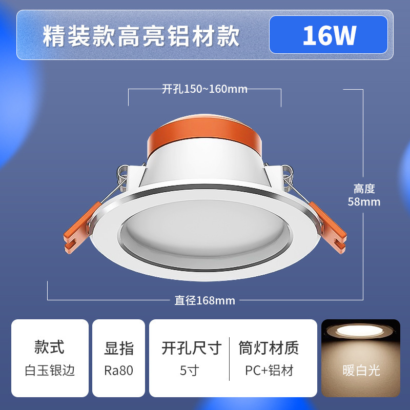 5-inch 16w hole 140-150mm4000k warm white [white jade silver edge]]