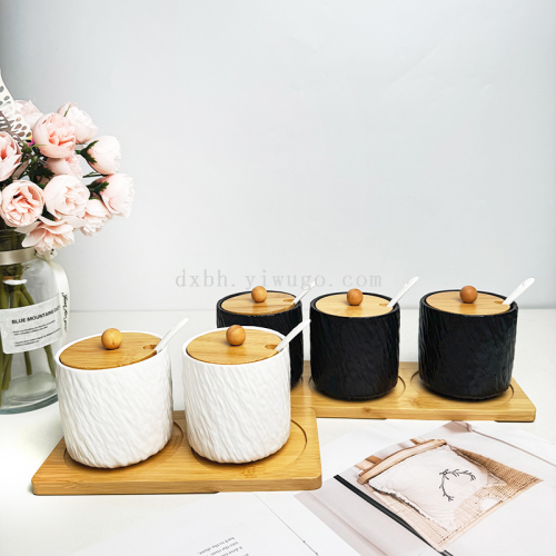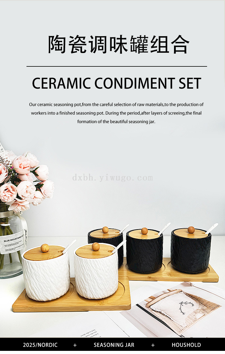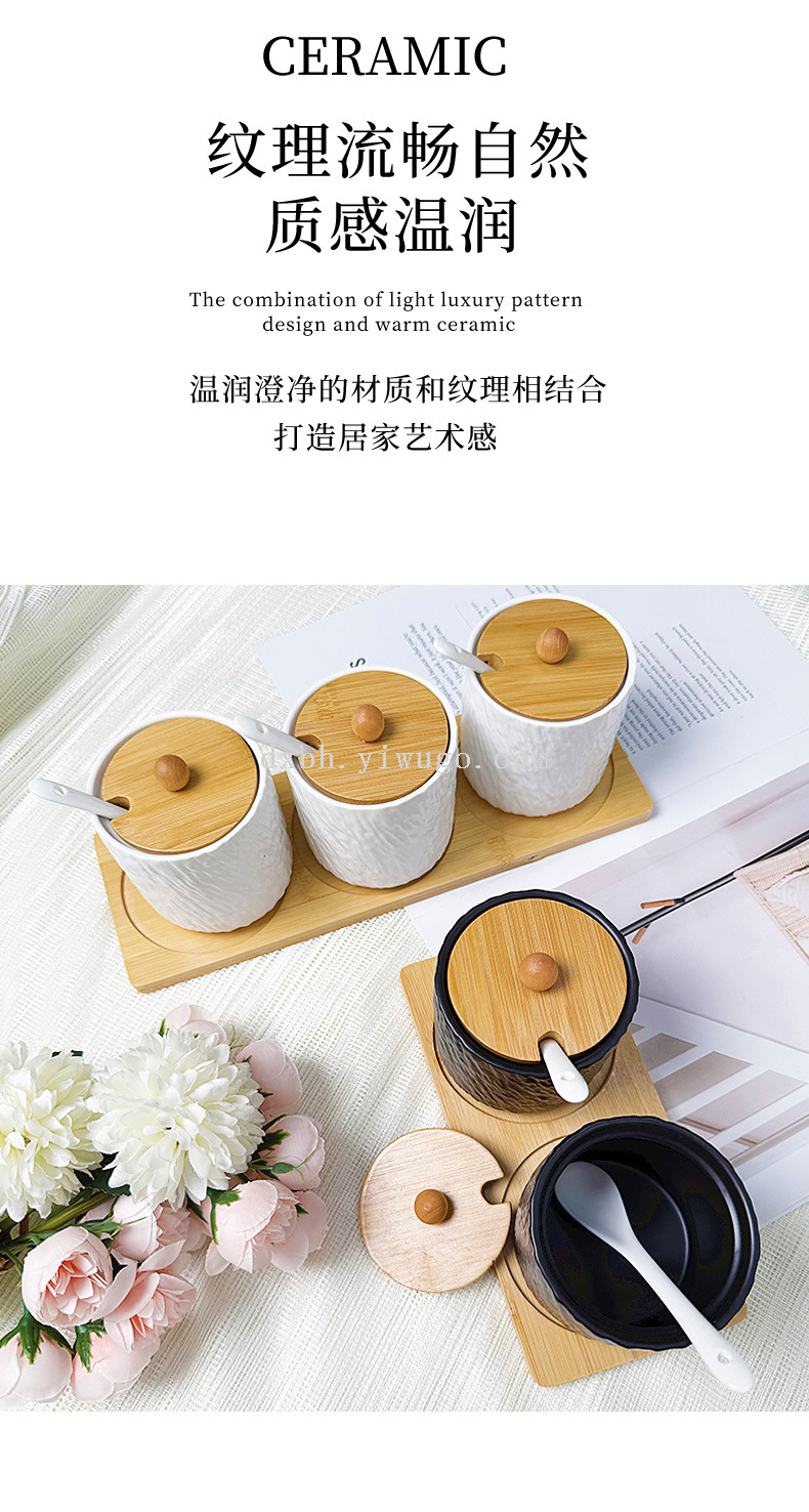 nordic ceramic seasoning jar stone pattern matte condiment dispenser kitchen salt shaker pepper jar seasoning box suit