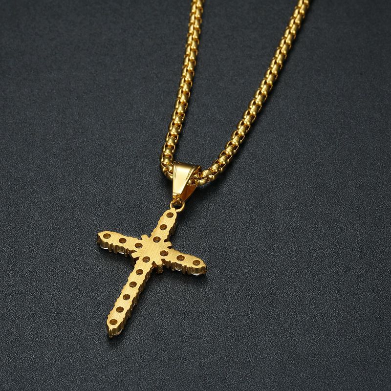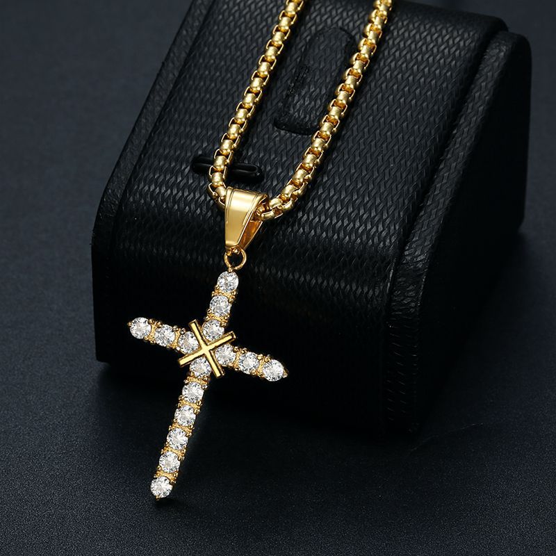 azhenan jewelry stainless steel chain brass pendant tennis cubic zirconia cross necklace fashion all-match