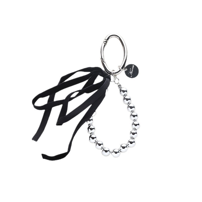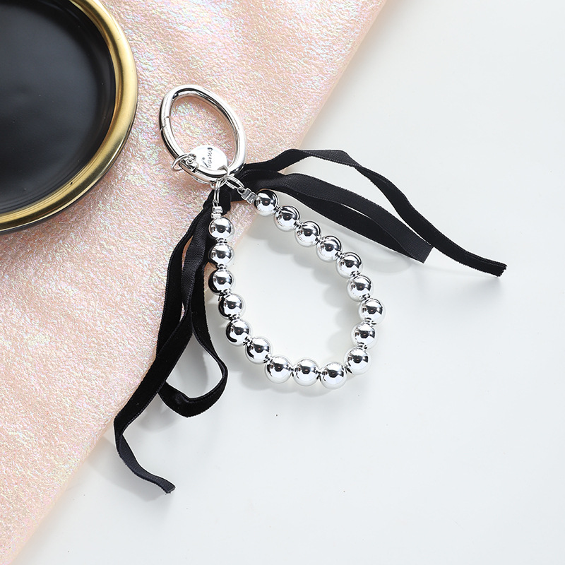 black ribbon beaded keychain