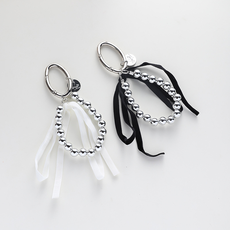 white ribbon beaded keychain