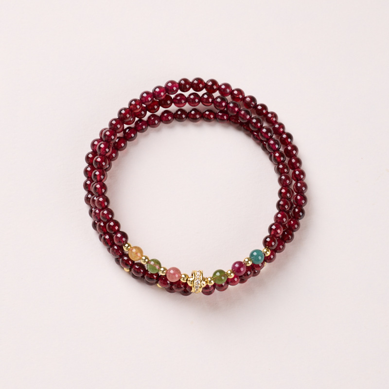 4mm garnet tourmaline three-ring bracelet