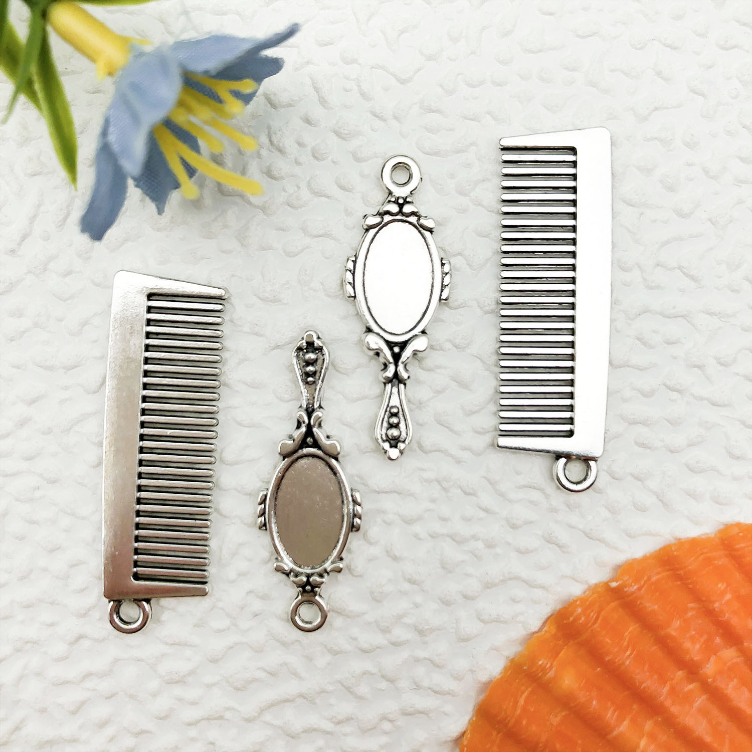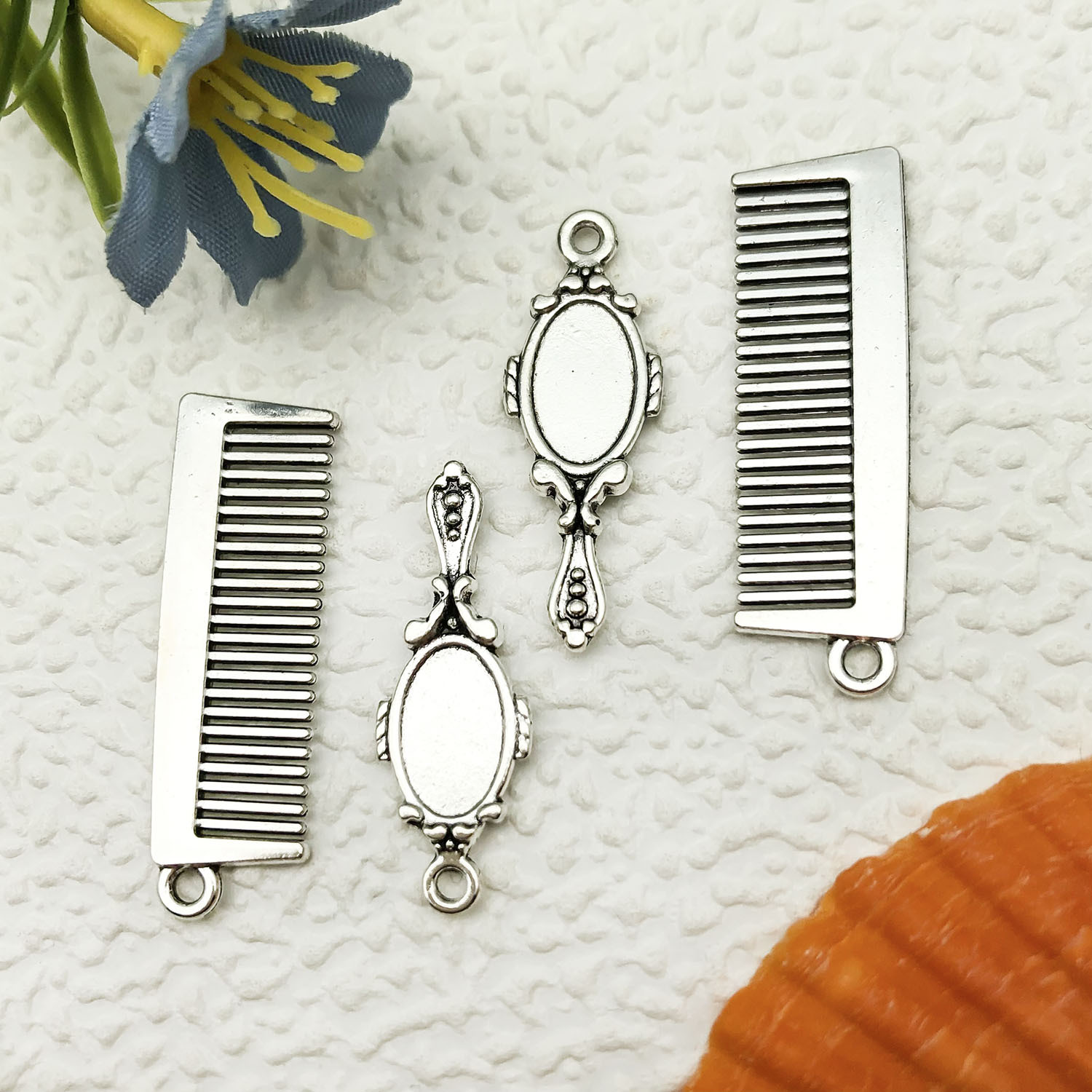 1 antique silver rectangular comb 10x32mm-1.6g-16941