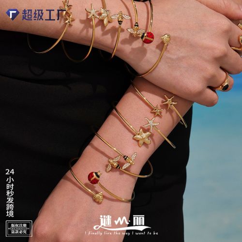 z469-gold double starfish zircon bracelet