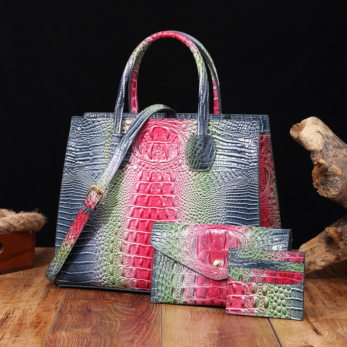 Bag size: 33*14*26.5CM, Handbag height: 11CM, Wallet: 20.5*1.5*11.5CM, Card case: Gross weight: 1000 grams