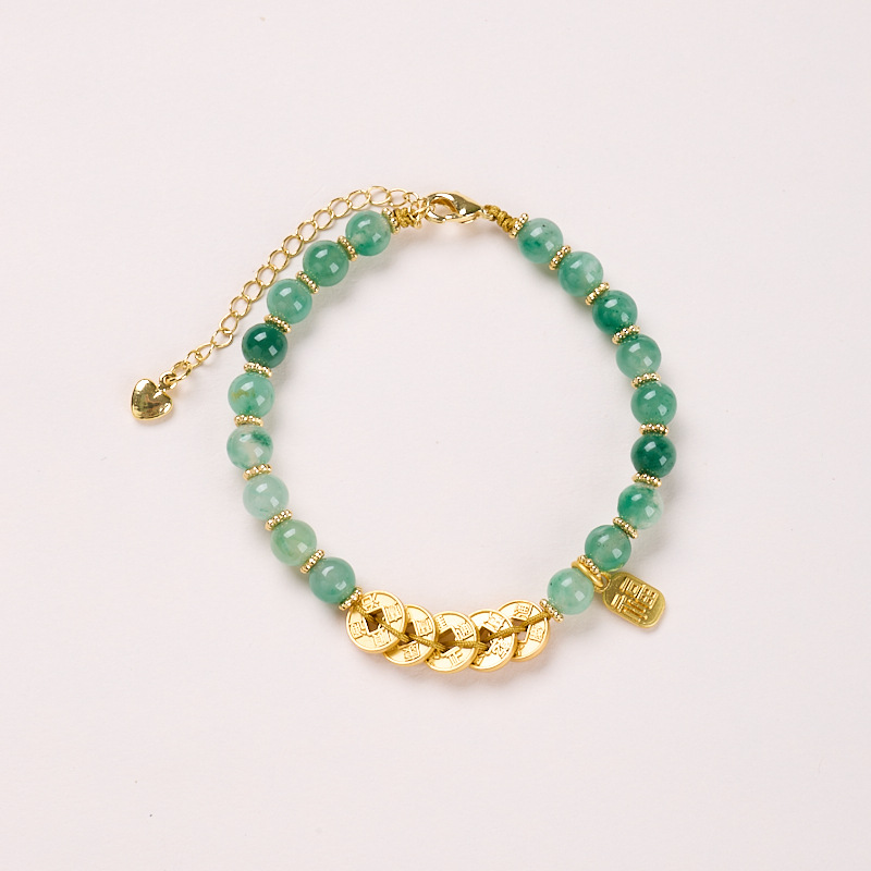 6mm african emerald qing dynasty five emperors' coins bracelet